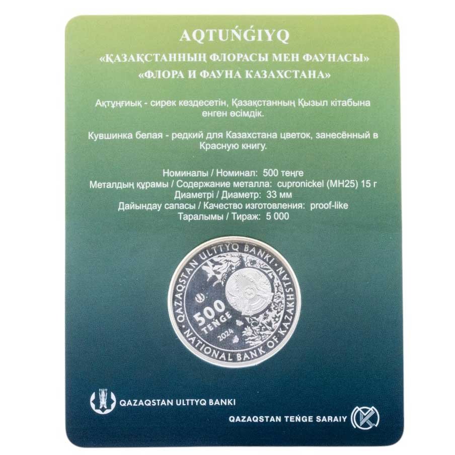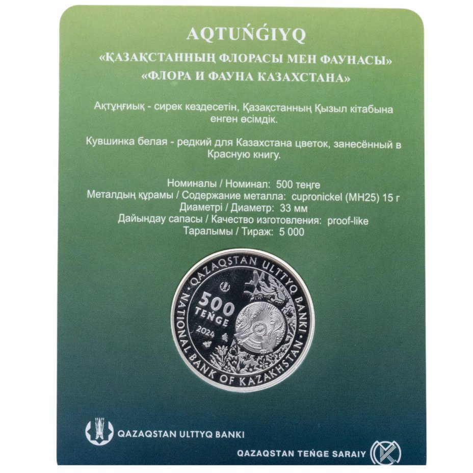 - Тираж: Монетный двор: Усть-Каменогорск, Казахстан; Знак: ҚҰБ; Proof=5000 шт.