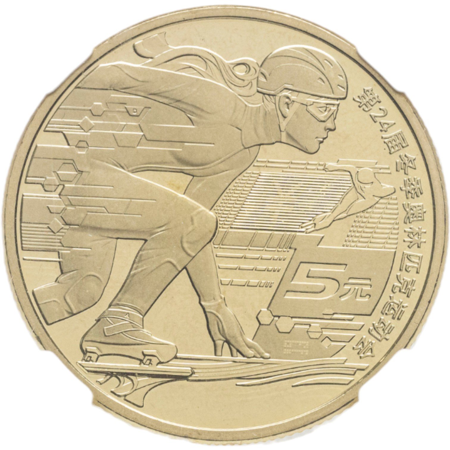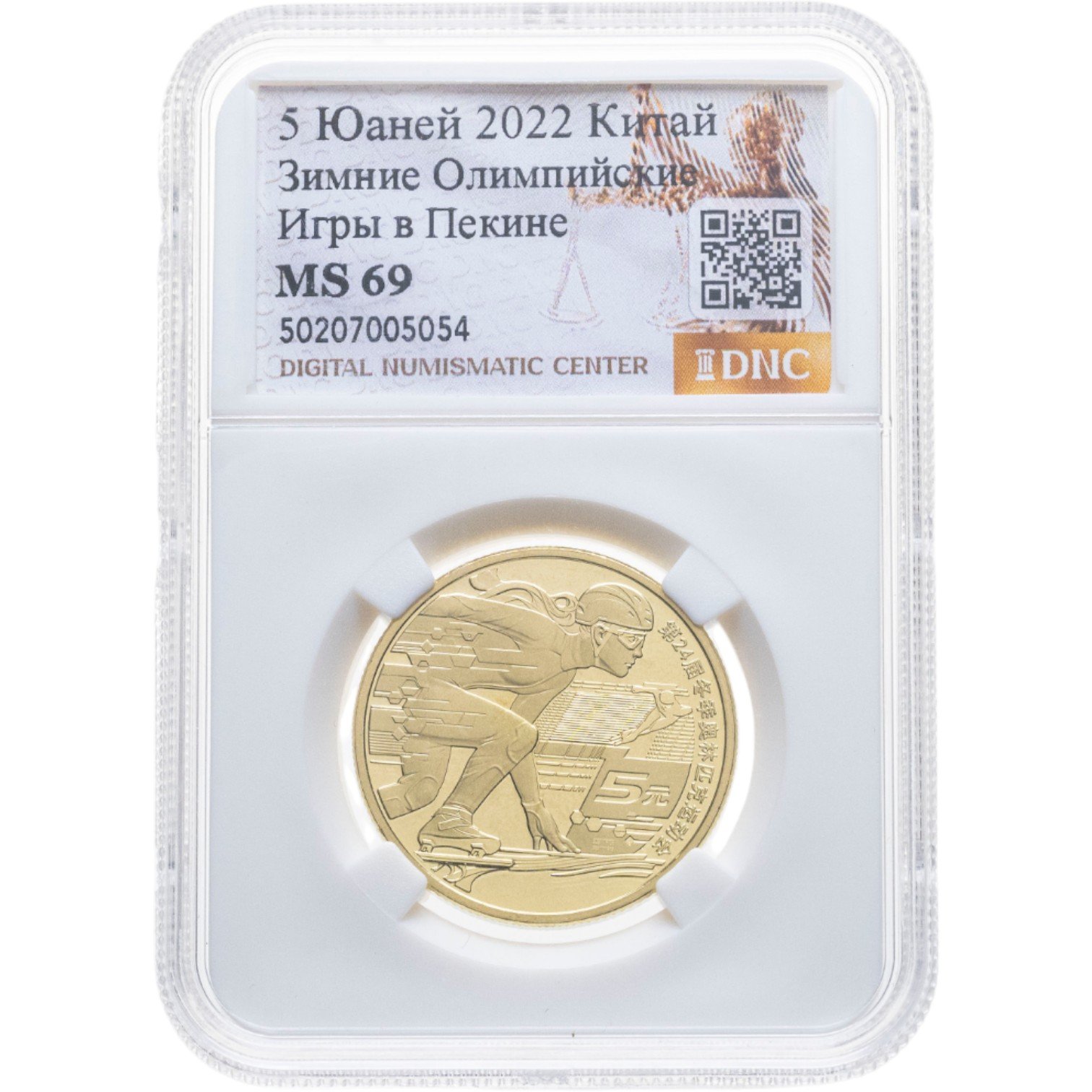 купить Китай 5 юаней 2022 "XXIV зимние Олимпийские игры, Пекин 2022 - Горнолыжный спорт" в слабе DNC MS69