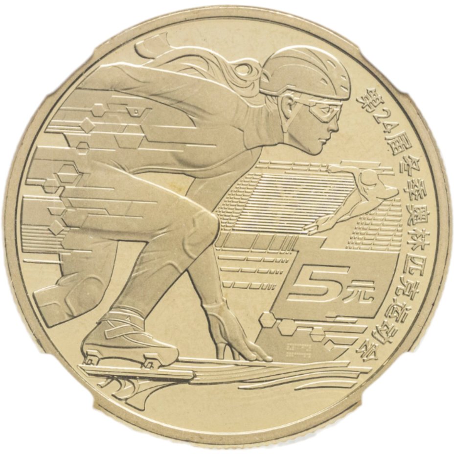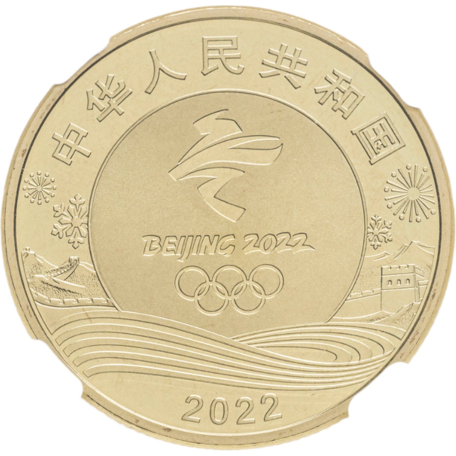 Купить Китай 5 юаней 2022 "XXIV зимние Олимпийские игры, Пекин 2022 - Горнолыжный спорт" в слабе DNC MS69