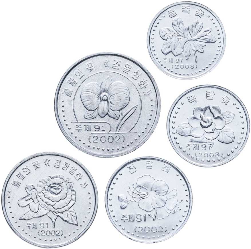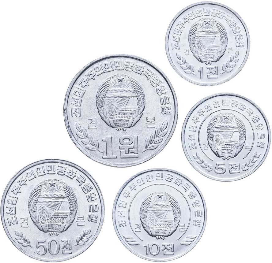 Номиналы 1, 5, 10 и 50 чон; 1 вон