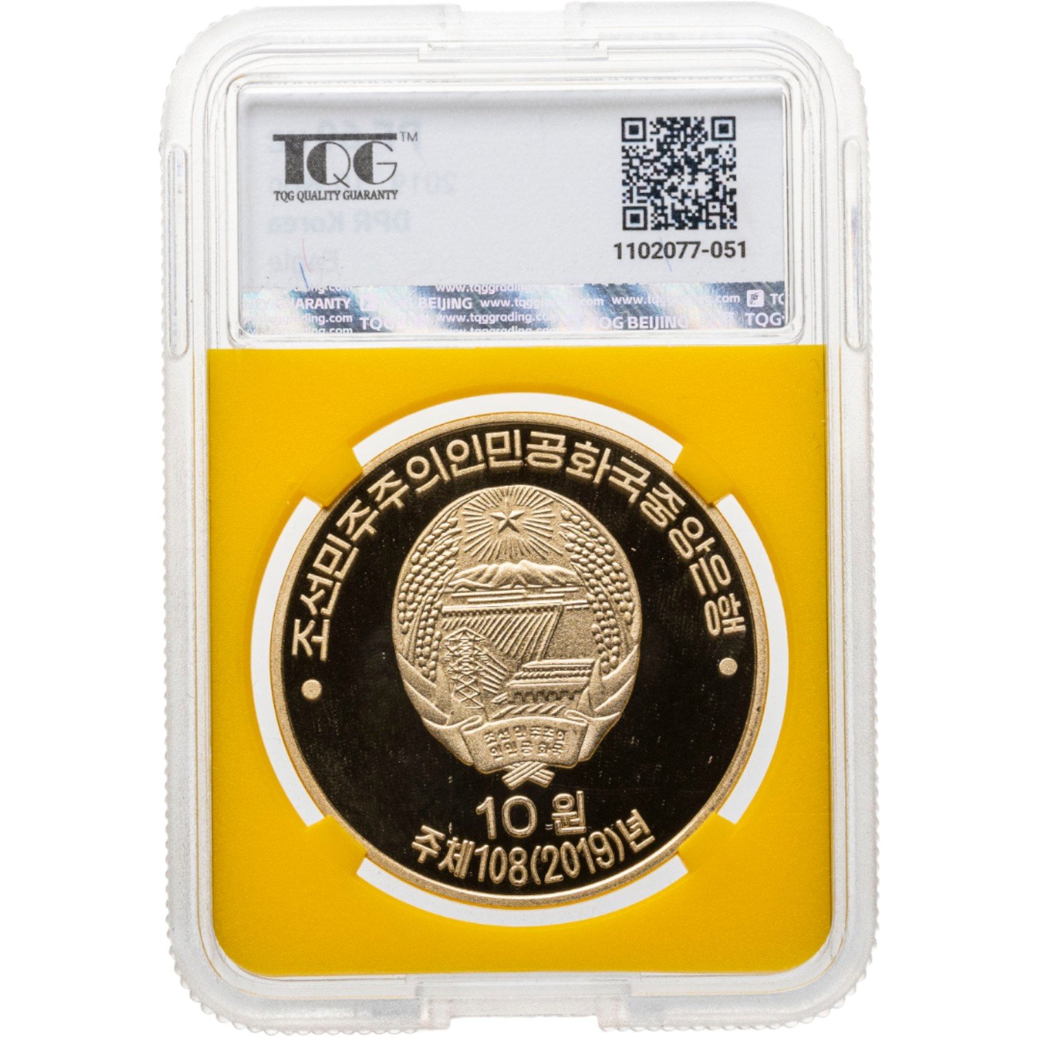 Северная Корея 10 вон 2022 Орёл" в слабе TQG PF69