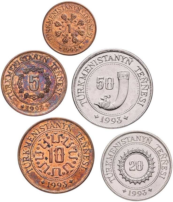 Туркменистан набор монет 1993 (5 штук) "Сапармурат Ниязов"