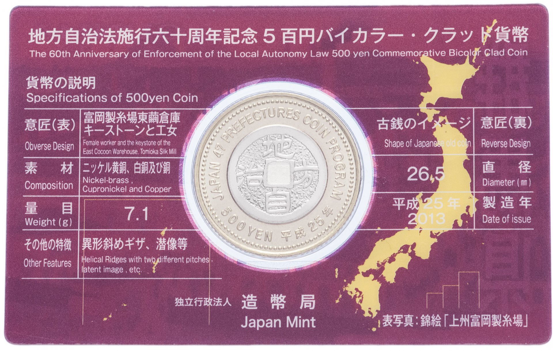 Япония 500 йен 2013 "47 префектур Японии - Гумма" в коинкарте