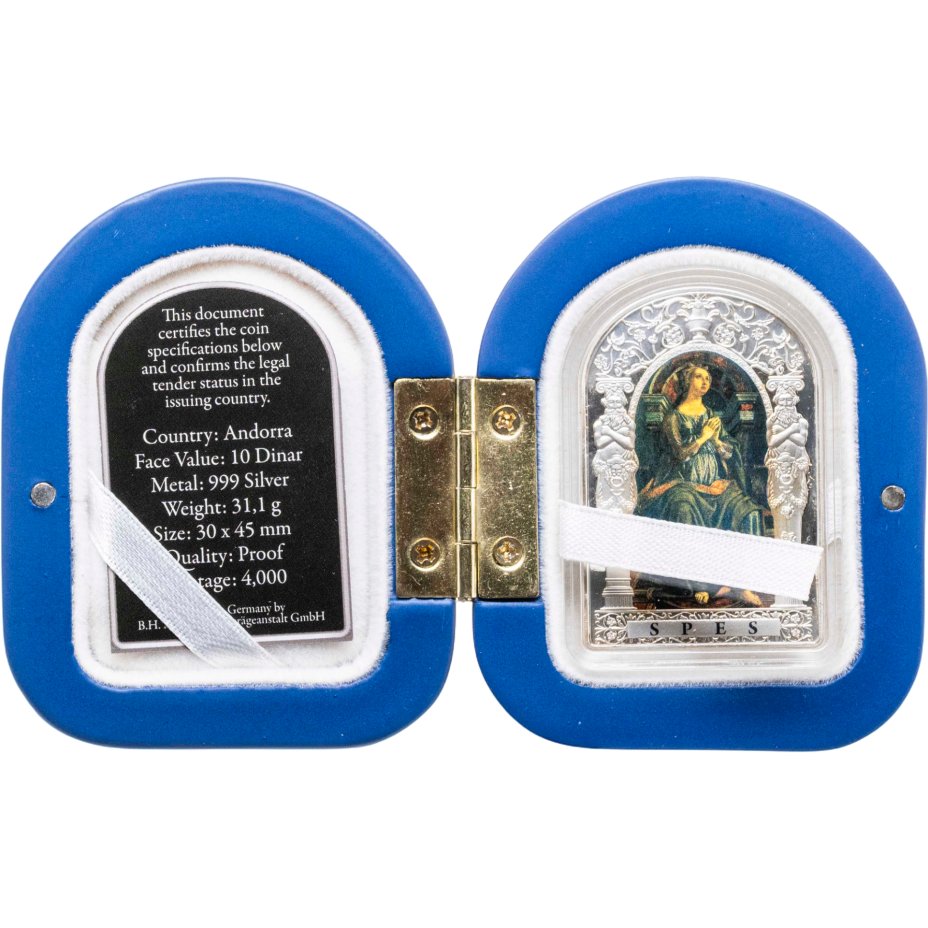 Андорра 10 динеров 2012 "Боттичелли. Семь добродетелей - Надежда (Spes)" в футляре, с сертификатом