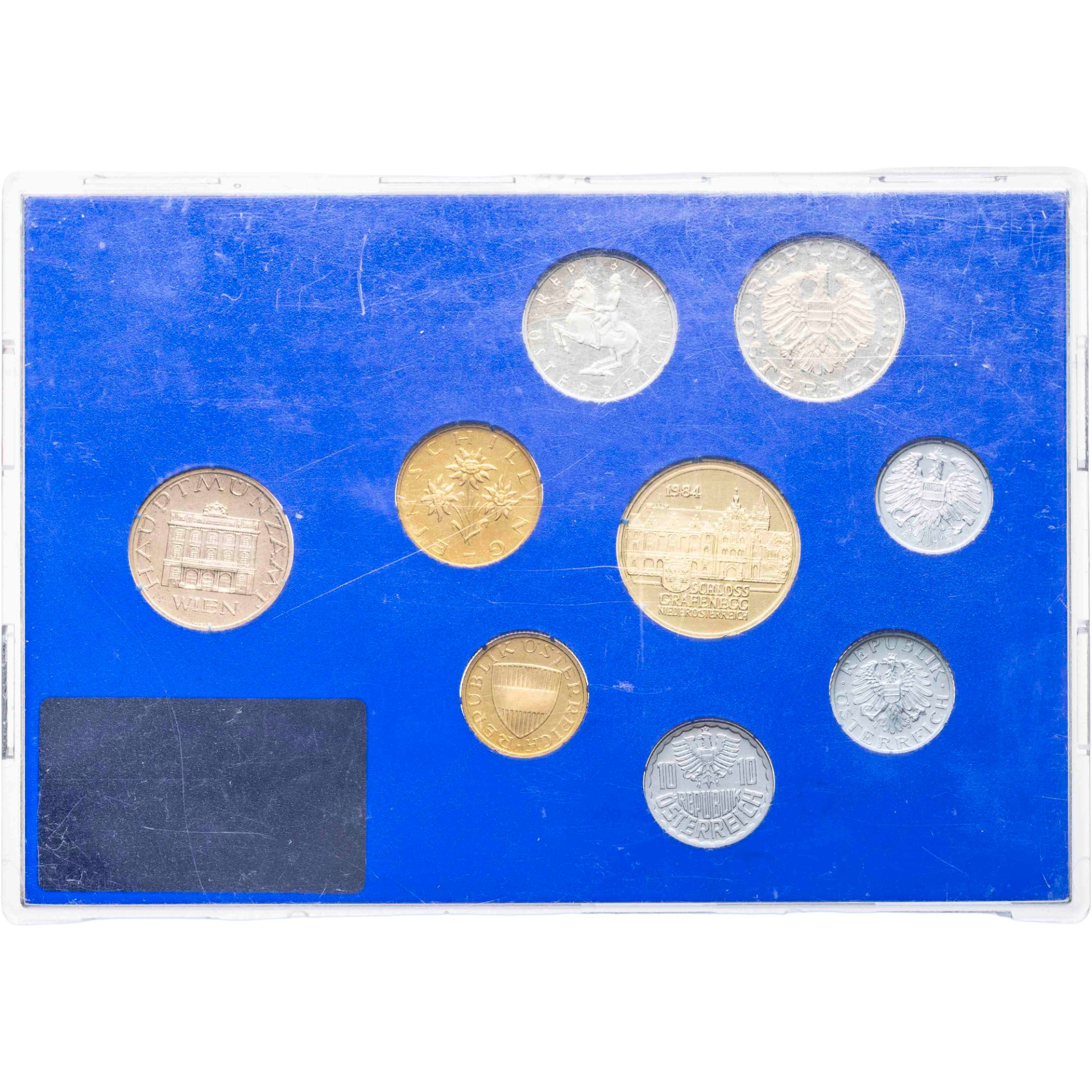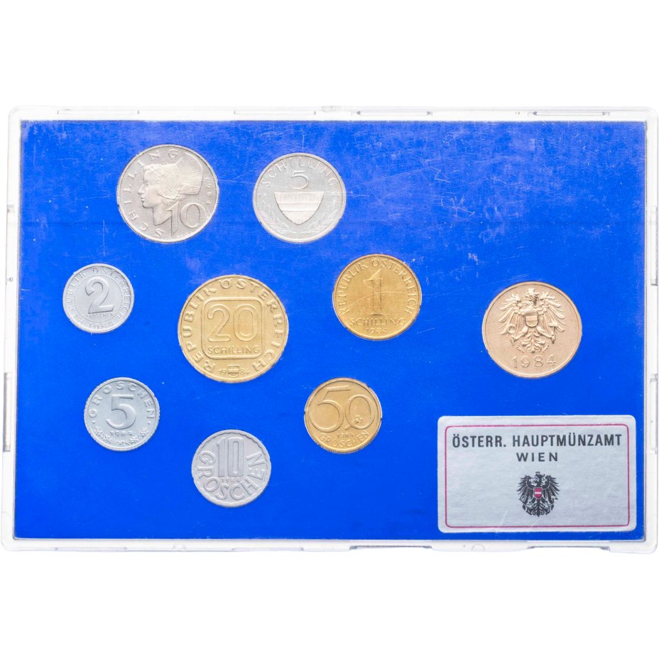 Австрия, годовой набор из 8 монет 1984 (с юбилейным 20 шиллингов 1984 "Дворец Графенег" и сувенирным жетоном монетного двора)