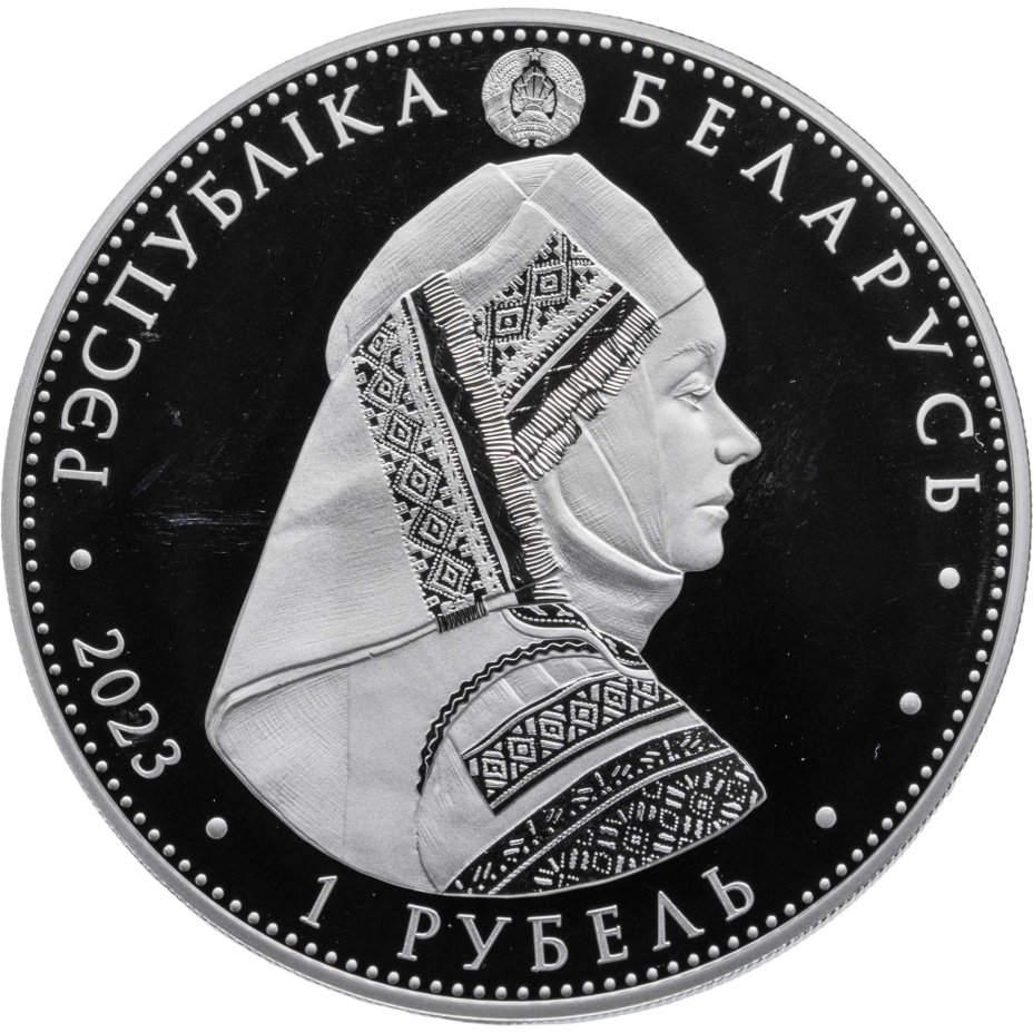 Беларусь 1 рубль 2023 "Белорусский национальный костюм - Калинковичский строй" в капсуле