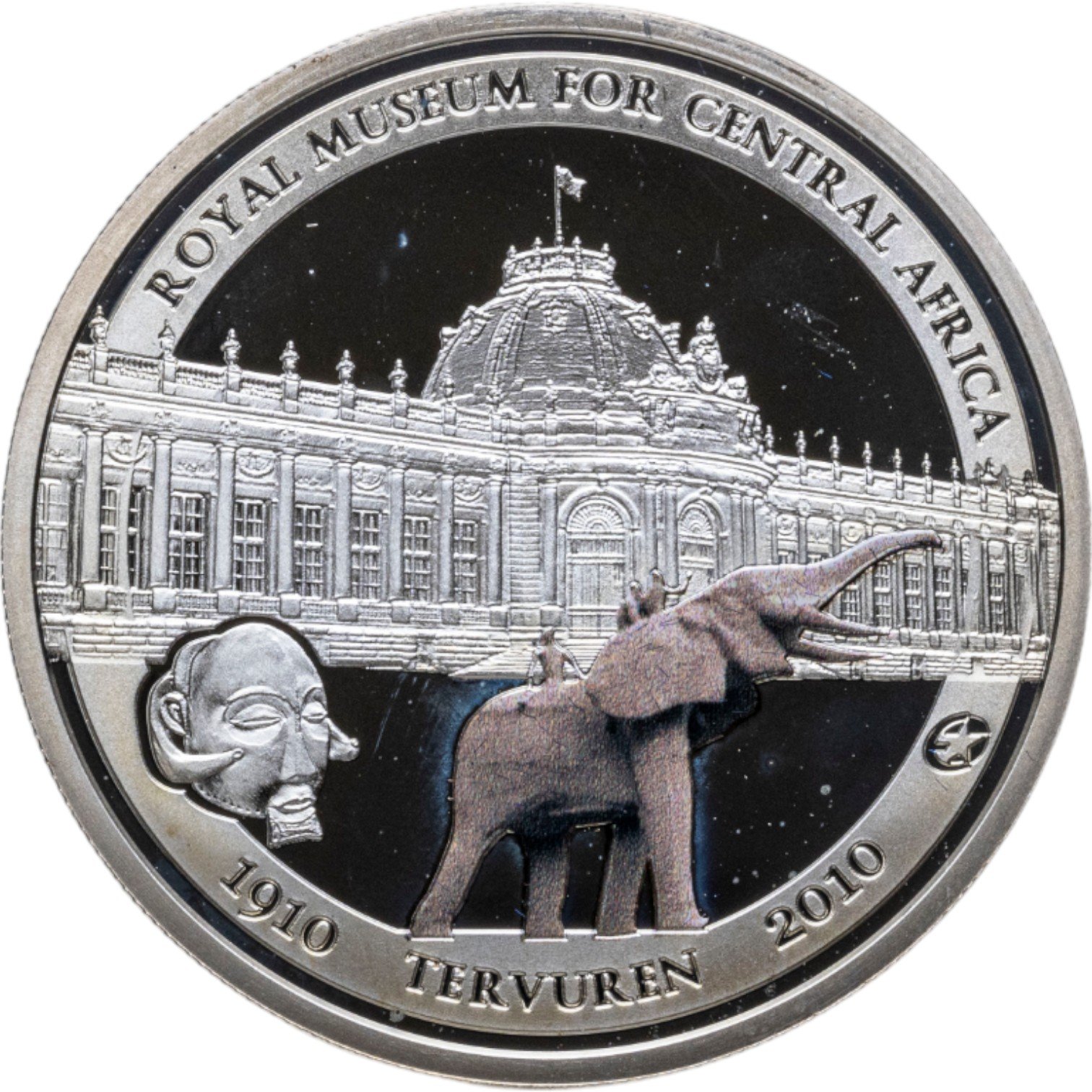 Описание реверса: в центральной части — здание королевского музея Центральной Африки, под ним — чучело мамонта и голова древнего человека. В верхней части по дуге края монеты текст на английском: «ROYAL MUSEUM FOR CENTRAL AFRICAN» — Королевский музей Центральной Африки, снизу — «1910 TERVUREN 2010» — 1910 Тервюрн 2010. 3