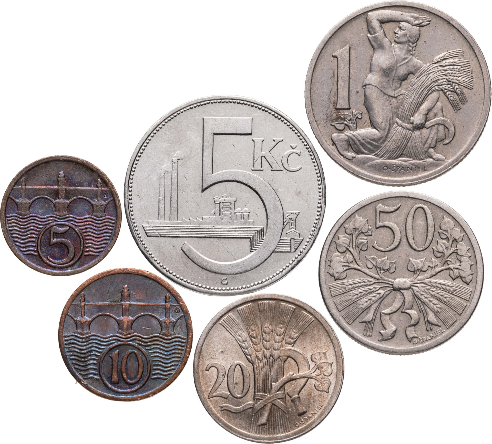 Чехословакия набор монет 1922-1938 (6 штук)