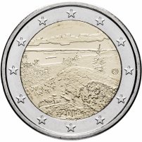 Финляндия не может похвастаться изобилием исторических и архитектурных памятников. Зато она обладает прекрасными пейзажами. На монете в 2 евро как раз и изображён один из таких видов – сопка Коли. Не будь такой монеты в 2 евро, мы бы никогда и не узнали, что в Финляндии ещё есть интересного, кроме деревни финского Деда Мороза – Йоулупукки и неизменной сауны.