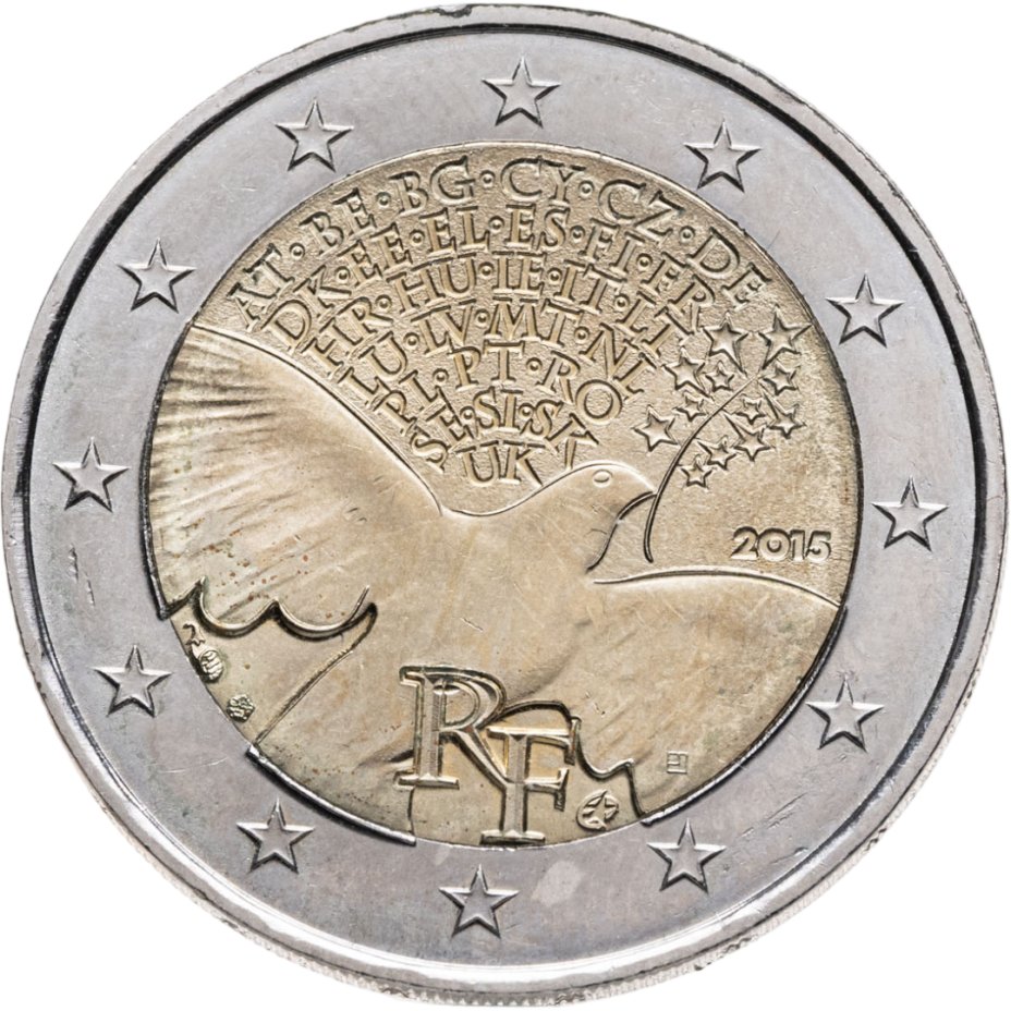 купить Франция 2 евро 2015 "70 лет мира в Европе"
