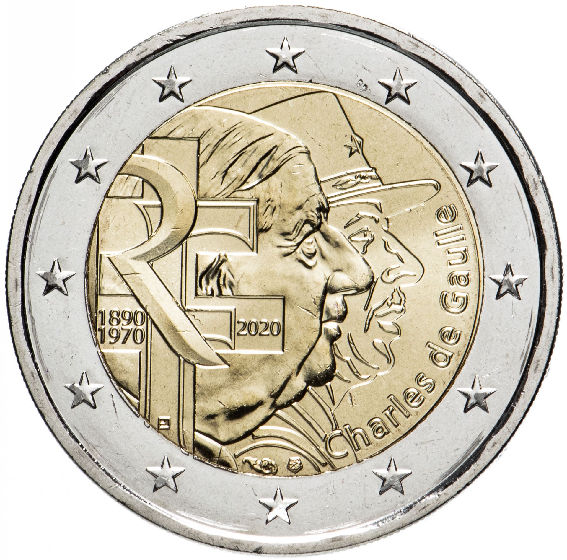 Франция 2 евро 2020 "Генерал Шарль де Голль"