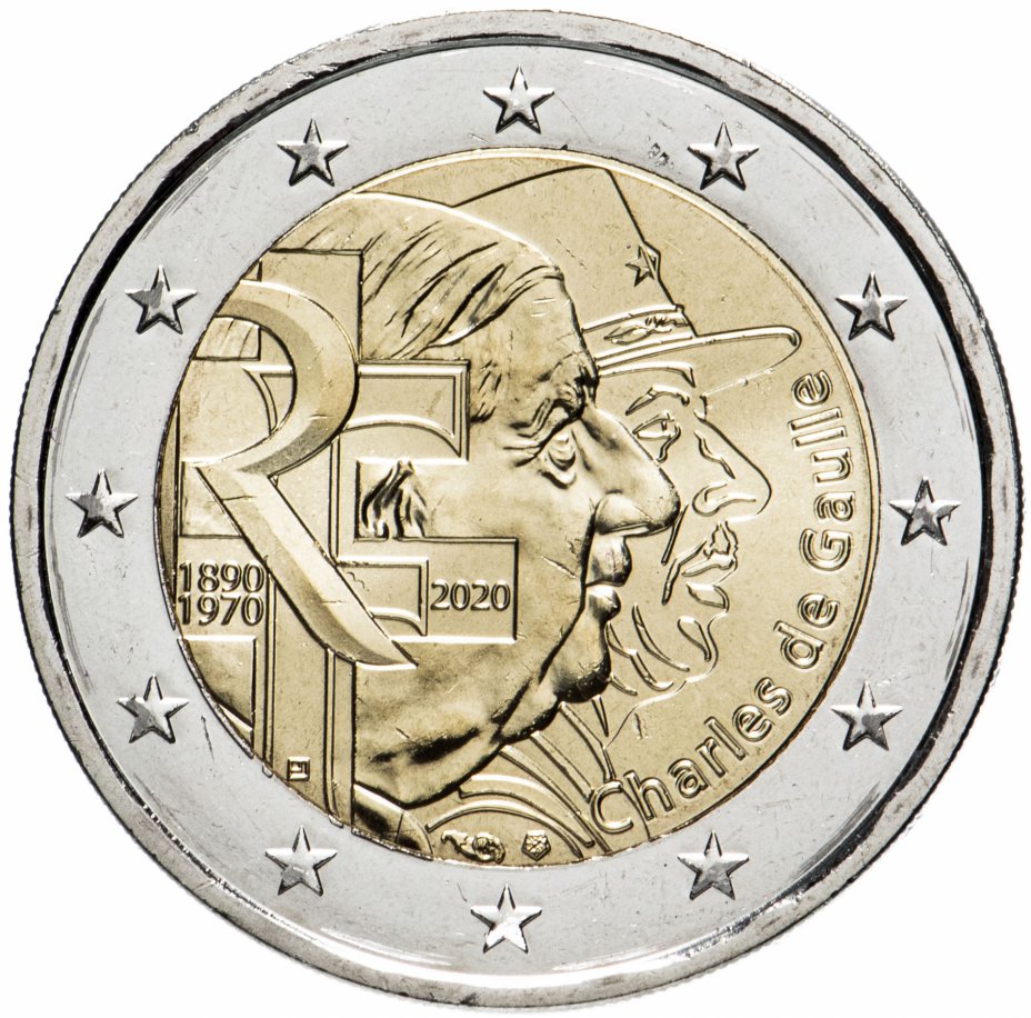 Купить Франция 2 евро 2020 "Генерал Шарль де Голль"