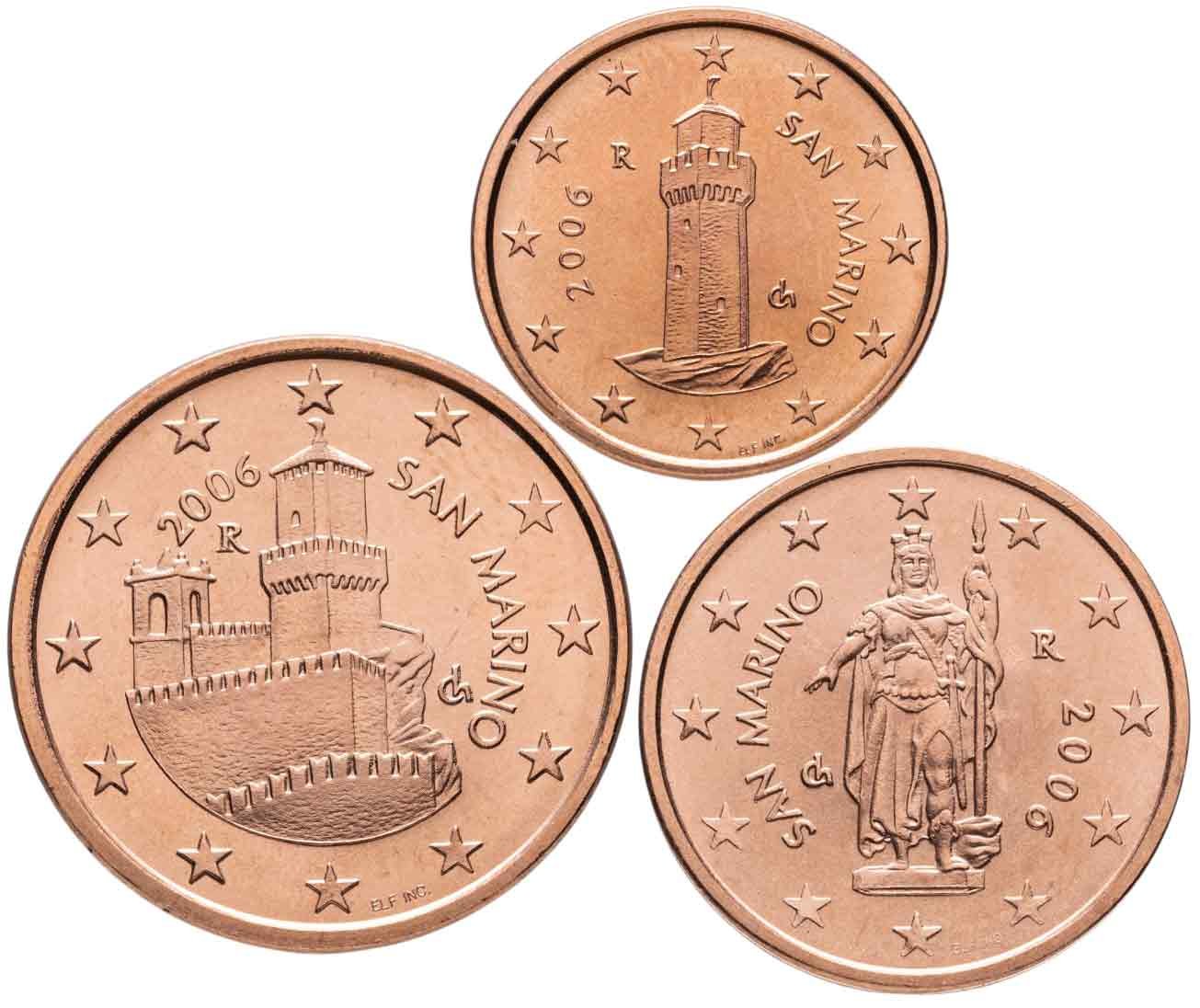 Сан-Марино набор из 3-х монет 1, 2, 5 евроцентов 2006