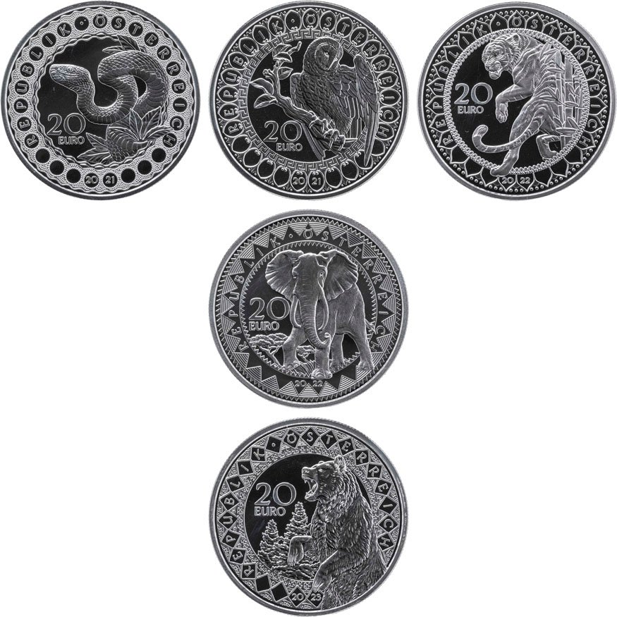 Над дизайном каждой такой монеты двадцать евро трудятся лучшие медальеры мира, таким образом, монеты сами по себе становятся произведением искусства и инструментом инвестиций. Первые монеты в 20 евро были выпущены задолго до его официального введения, ещё в 1996 году, и выходят ежегодно.