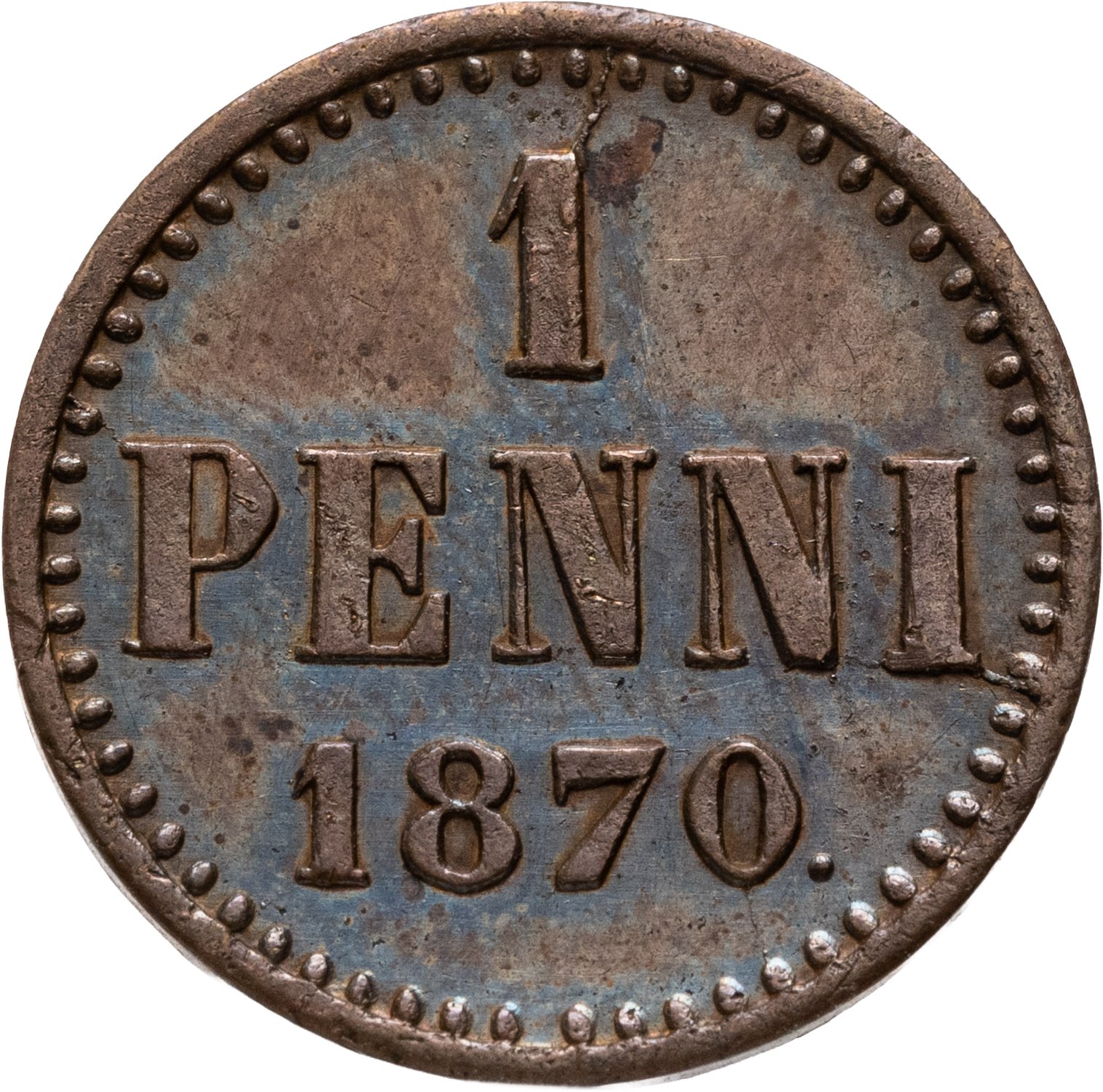 1 пенни (penni) 1870 монета для Финляндии