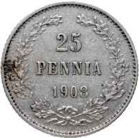 25 пенни 1908 L, монета для Финляндии