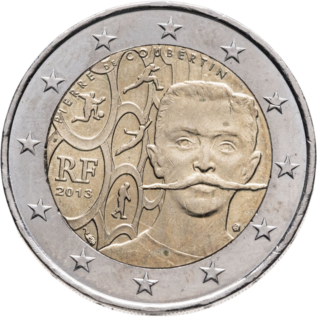 Купить Франция 2 euro (евро) 2013 "150 лет со дня рождения Пьера де Кубертена"