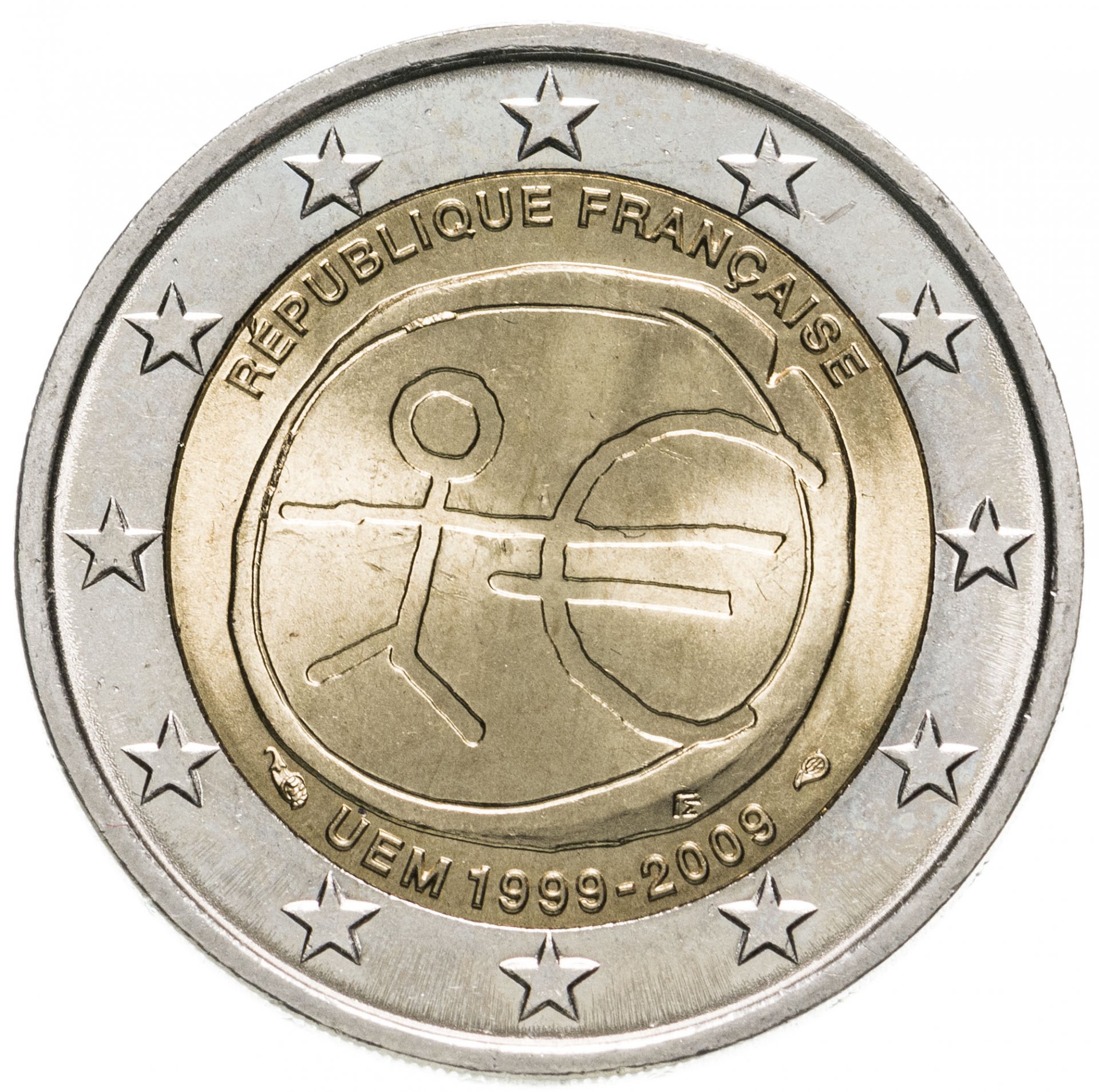 Франция 2 евро 2009 "10-летие Экономического и валютного союза ЕС"