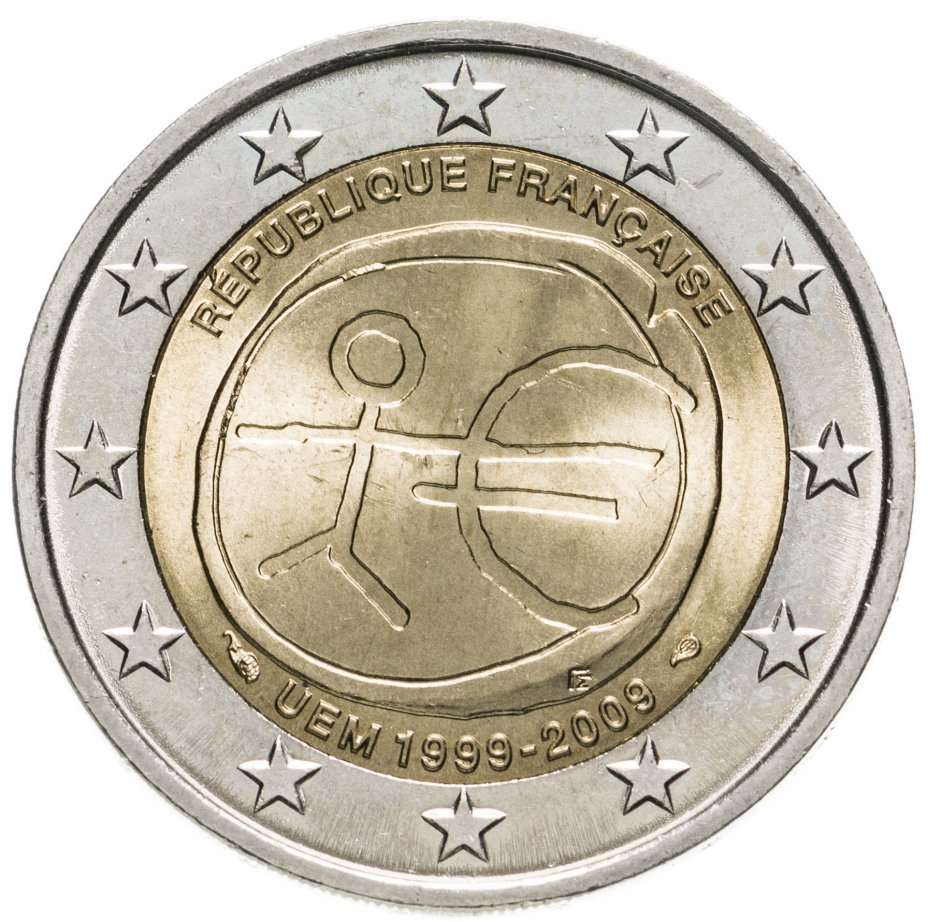 Купить Франция 2 евро 2009 "10-летие Экономического и валютного союза ЕС"