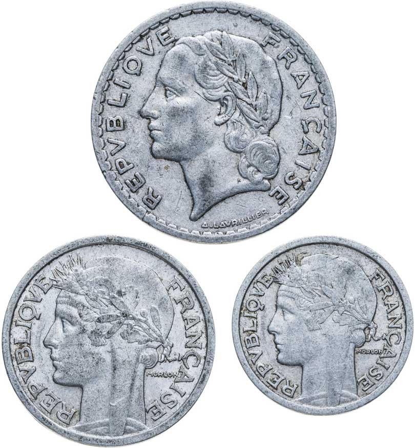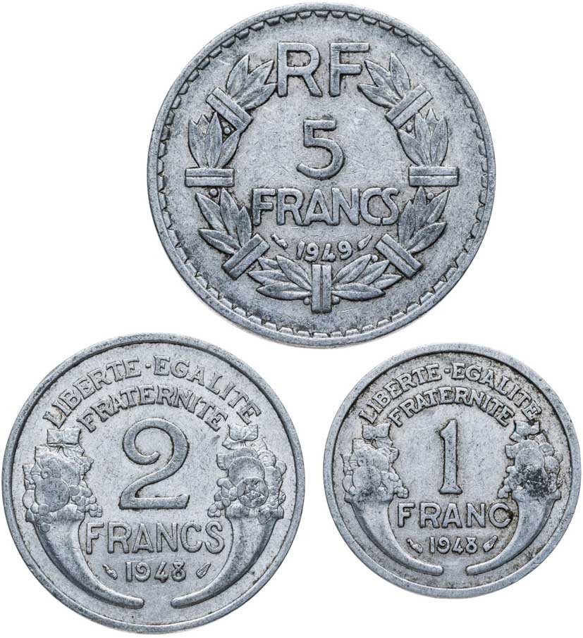 Франция 5 2 1 франк 1948-1949 набор из 3-х монет