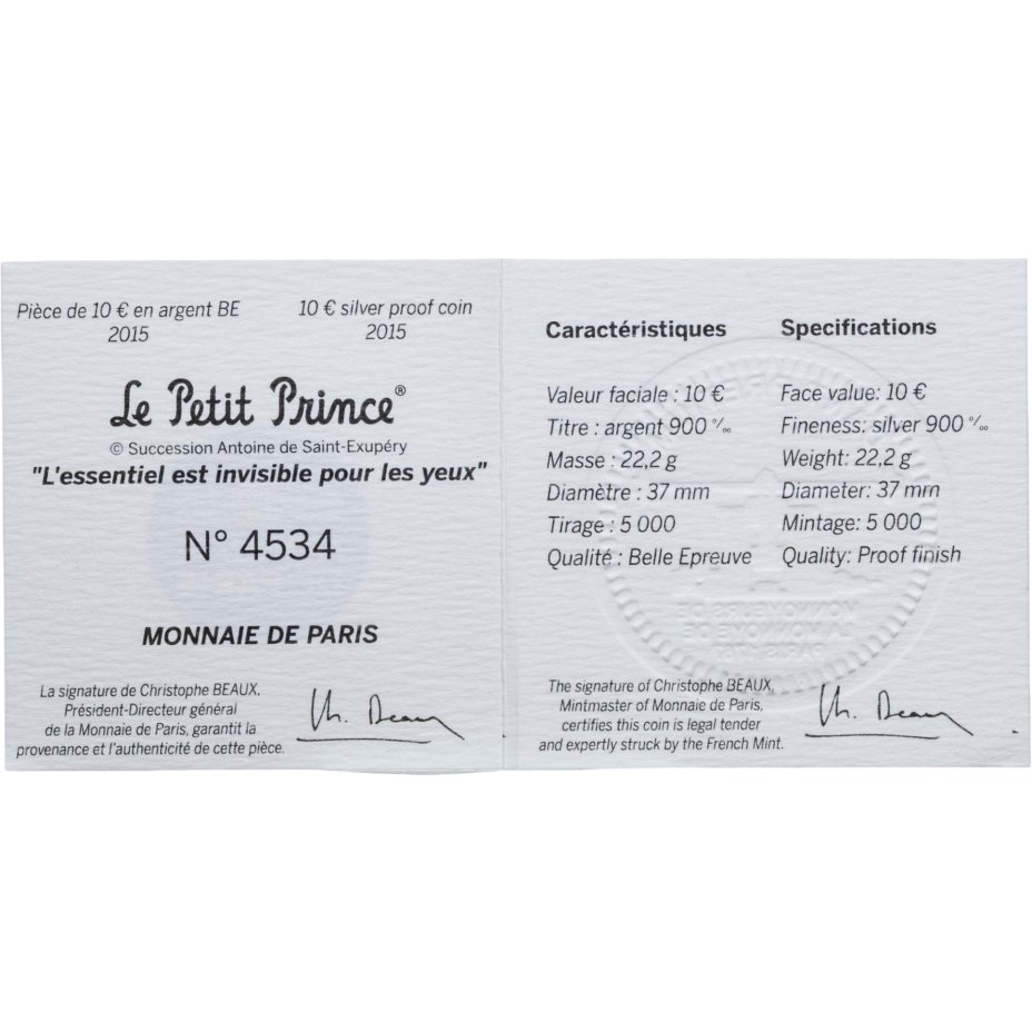 - Тираж: Монетный двор: Париж, Франция; UNC=4984400; BU=да; Proof=17000 шт.