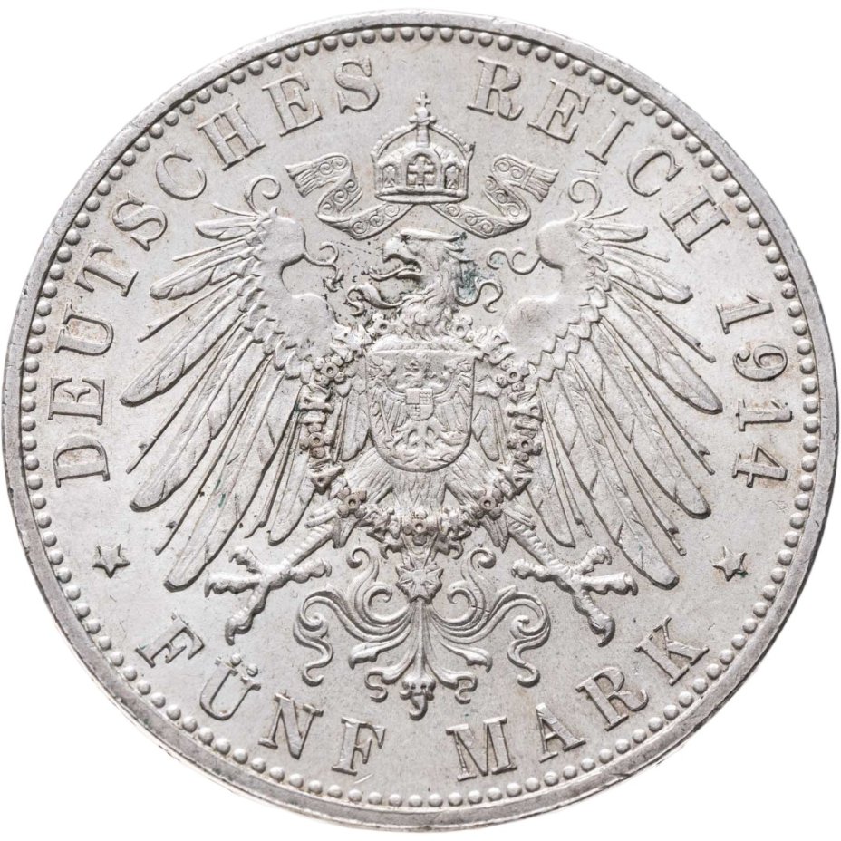 Германская Империя, Бавария 5 марок (mark) 1914 Знак монетного двора "D" - Мюнхен