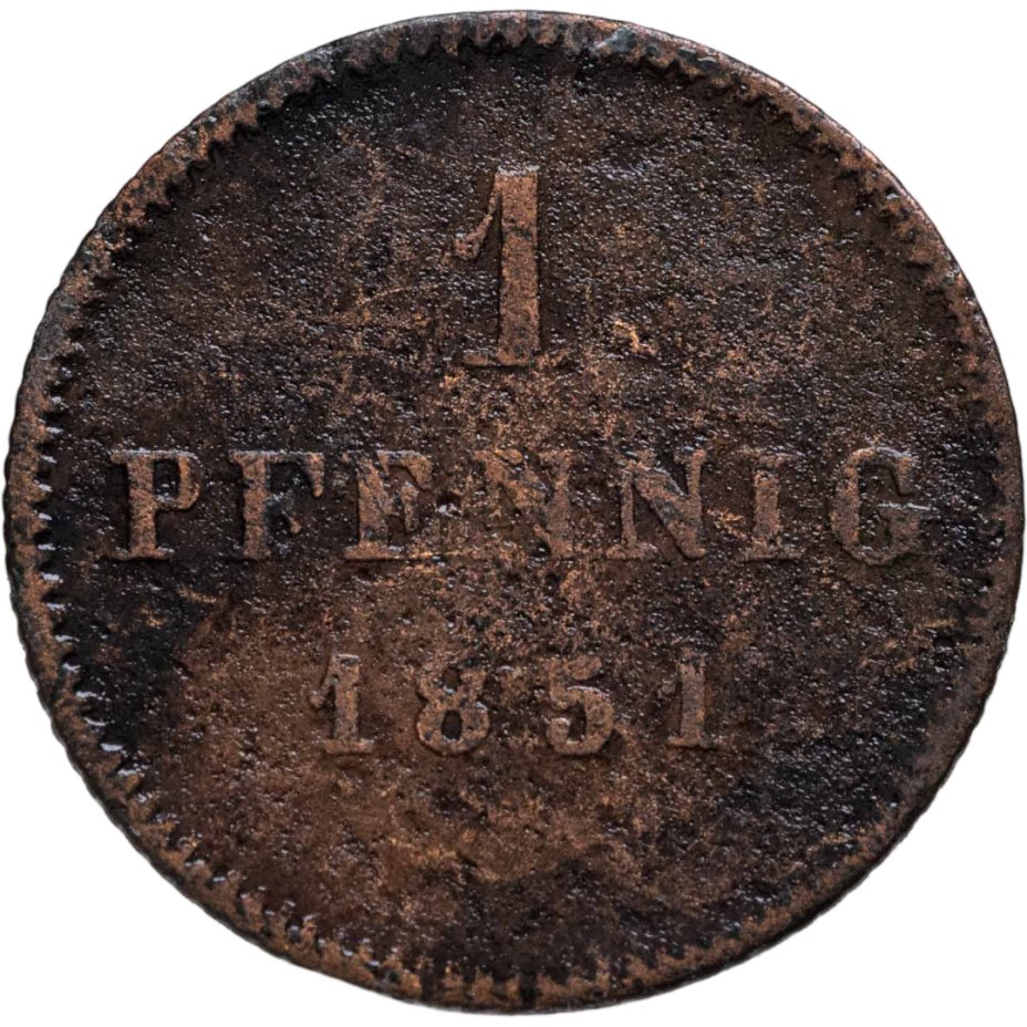 Германия, Бавария 1 пфенниг 1851