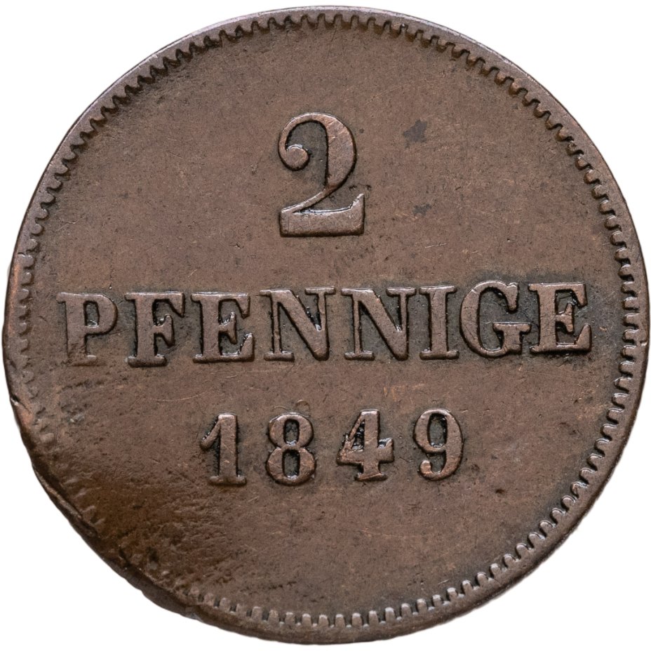 Германия, Бавария 2 пфеннига 1849