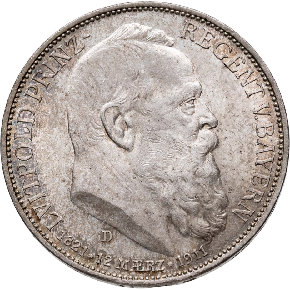 Германская империя, Бавария 5 марок 1911 "90 лет со дня рождения Луитпольда Баварского"