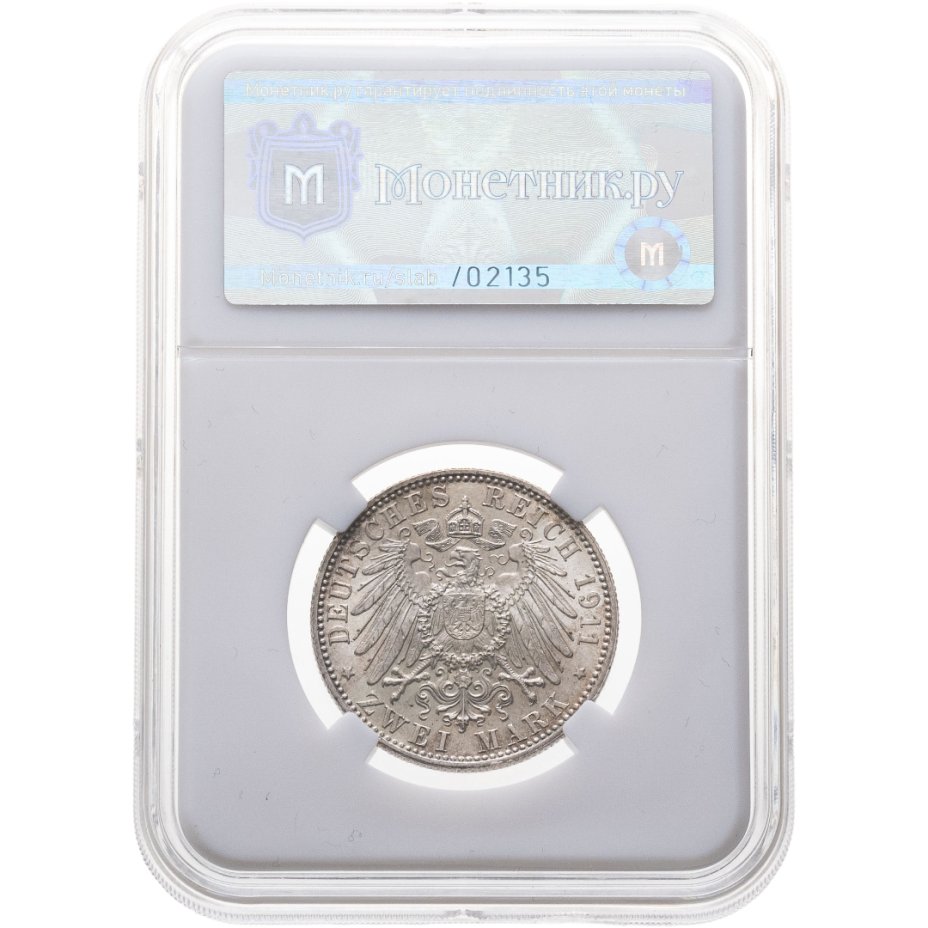 Германия (Империя), Бавария 2 марки (mark) 1911 D "90 лет со дня рождения Луитпольда Баварского", в слабе Монетник.ру MS64