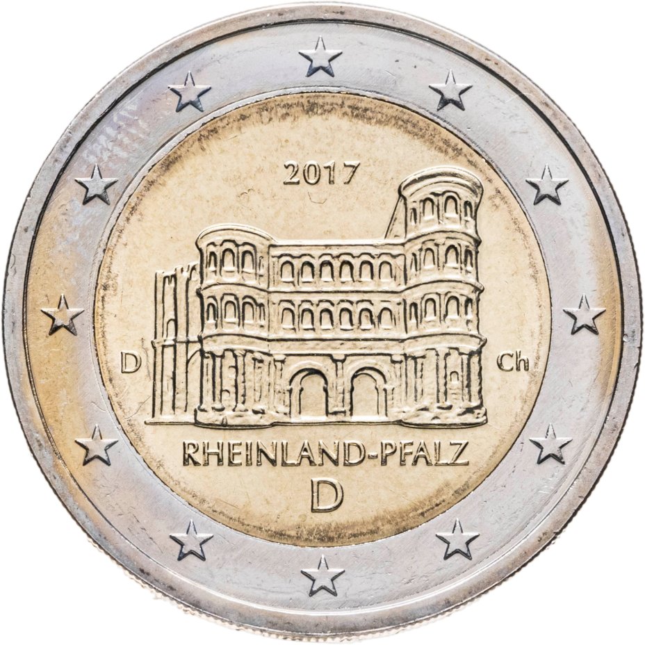 Купить Германия 2 евро (euro) 2017 Федеральные земли: Рейнланд-Пфальц - Порта Нигра, знак монетного двора "D" - Мюнхен