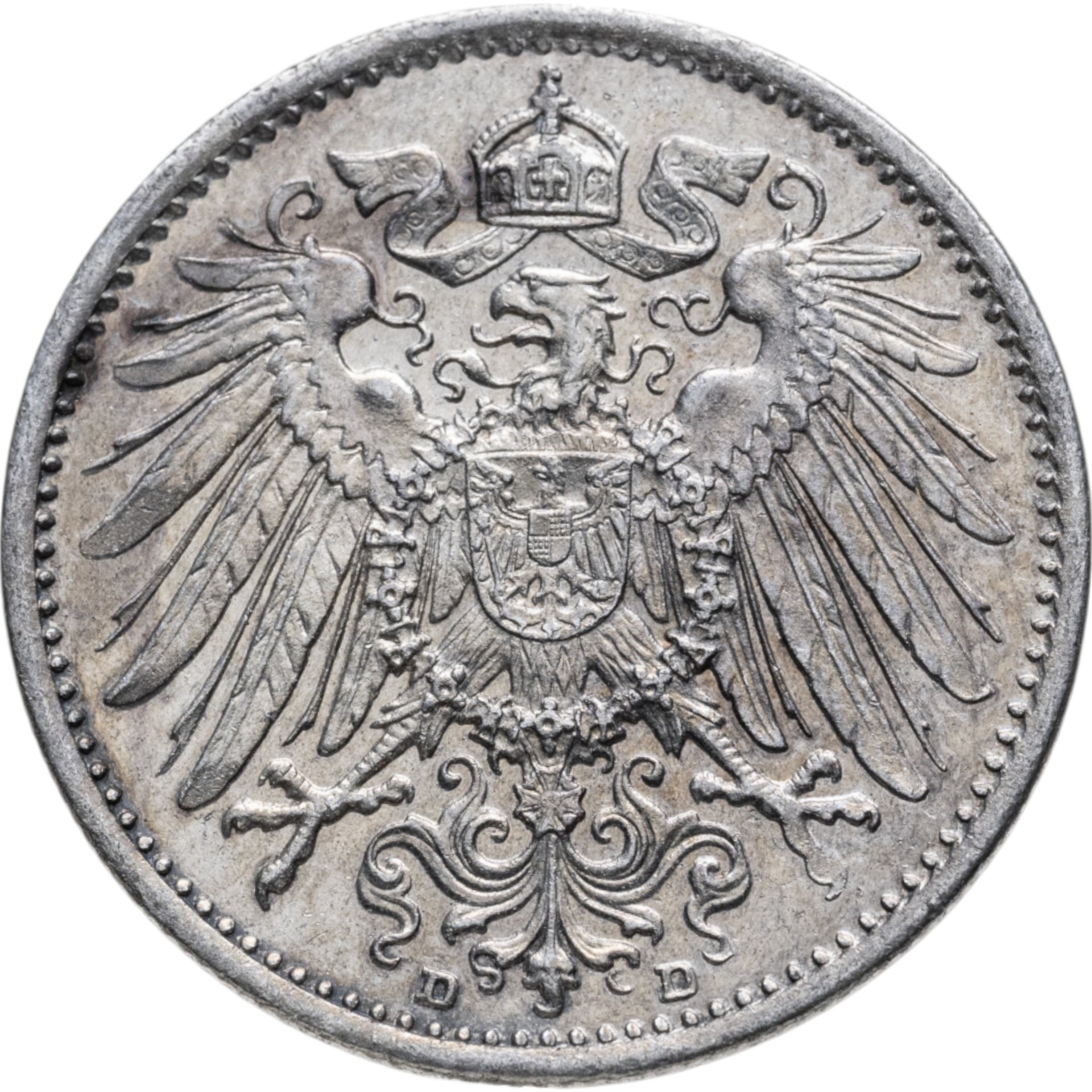 Германия 1 марка (mark) 1915 D знак монетного двора: "D" - Мюнхен