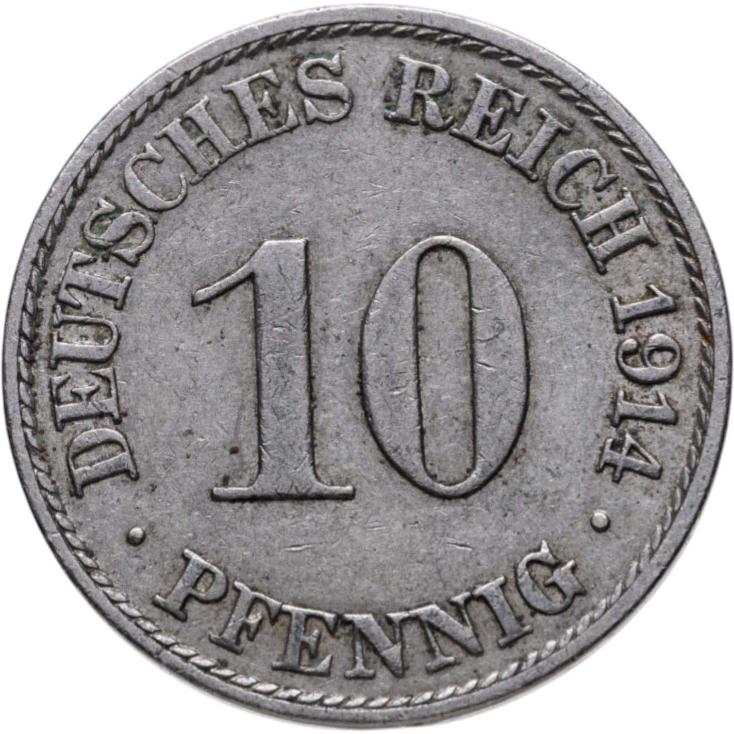 Германия 10 пфеннигов 1914 знак монетного двора: "A"