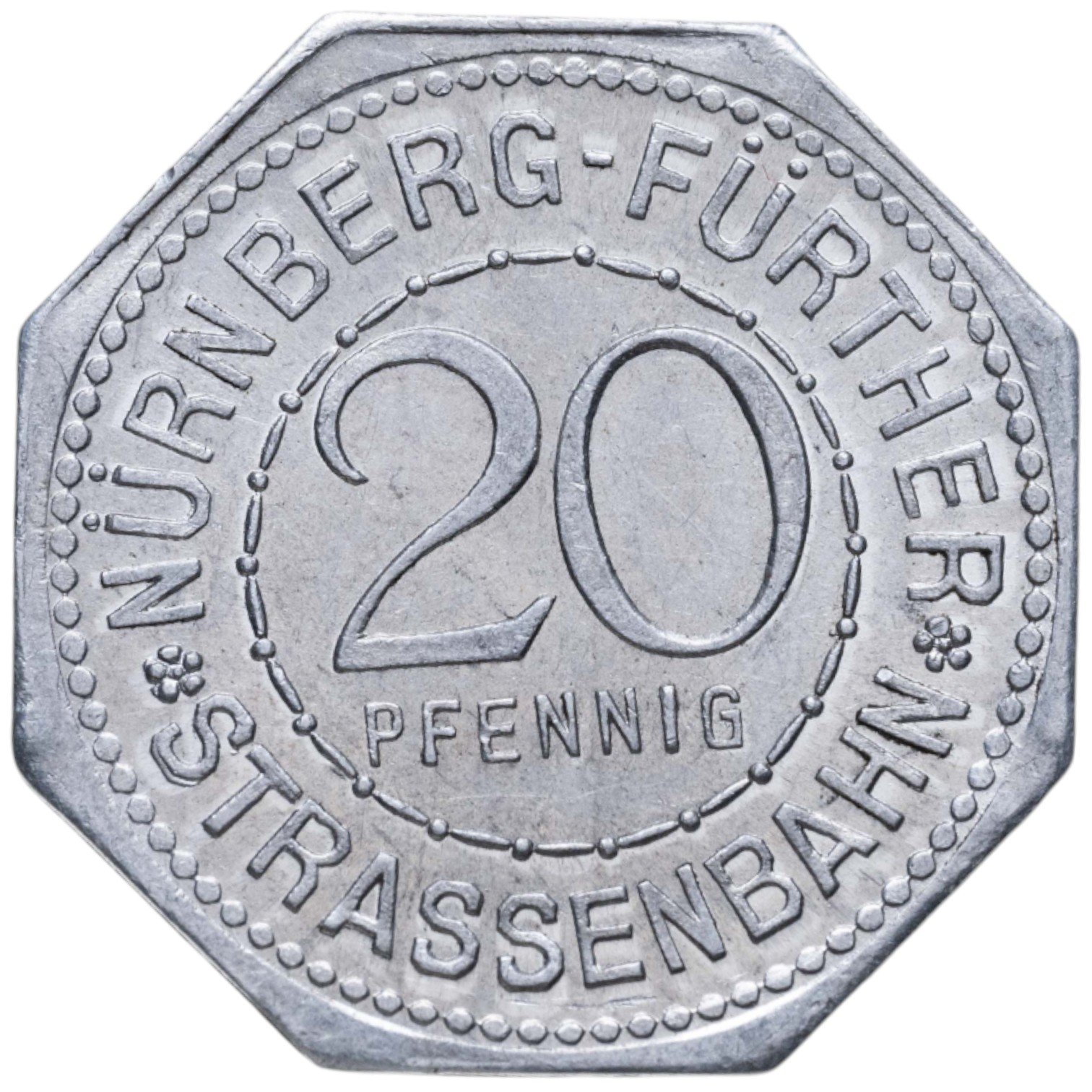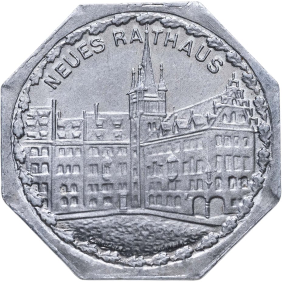 Германия (Нюрнберг) нотгельд 20 пфеннигов 1921 "Новая ратуша" трамвайный жетон