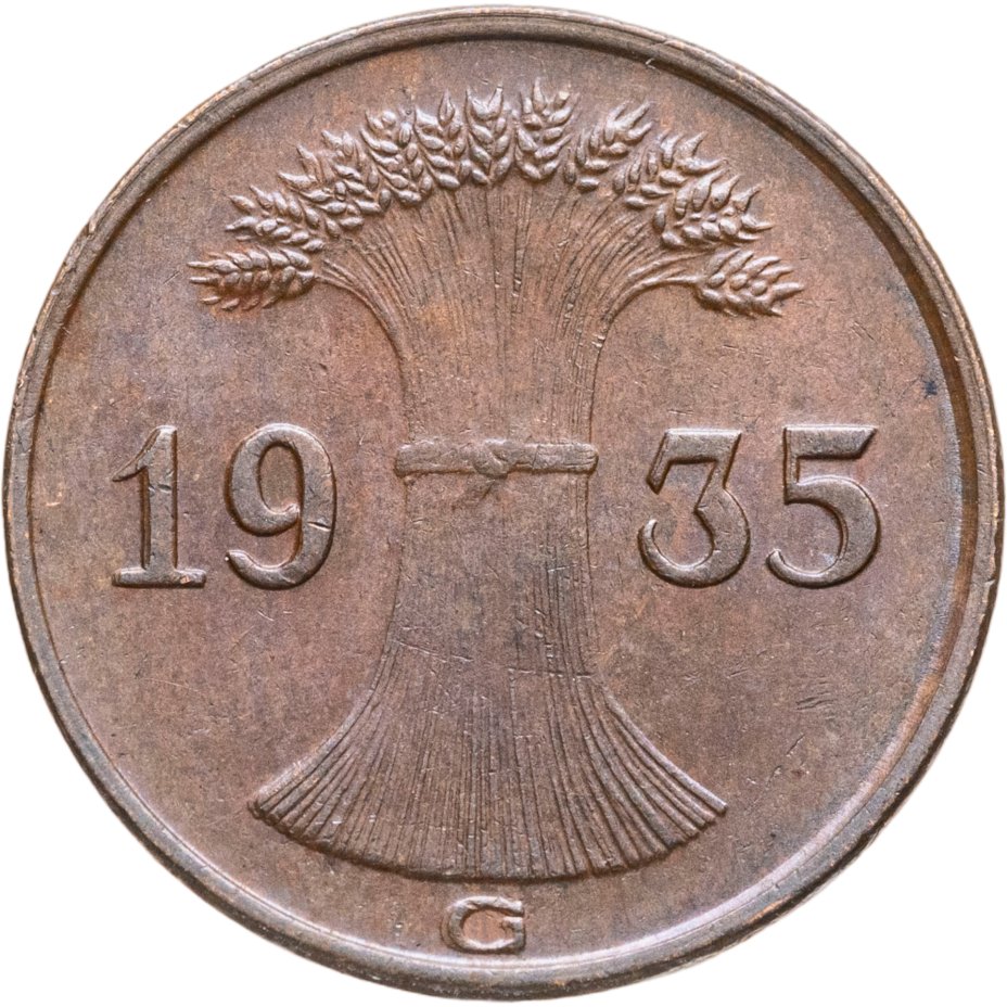 Купить Германия 1 рейхспфенниг (reichspfennig) 1935, знак монетного двора "G" — Карлсруэ