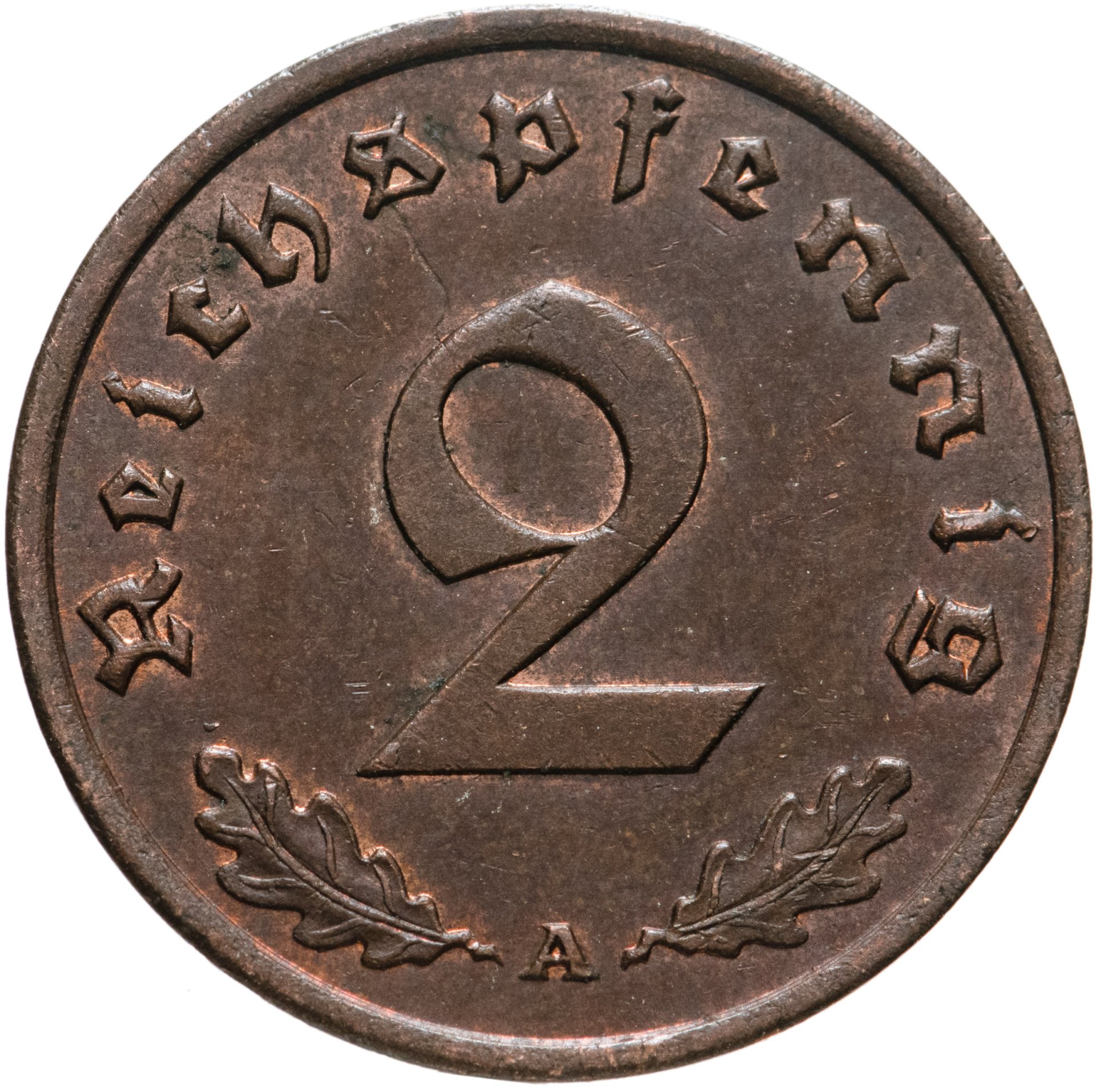 • Номинал: 2 рейхспфеннига (reichspfennig)
