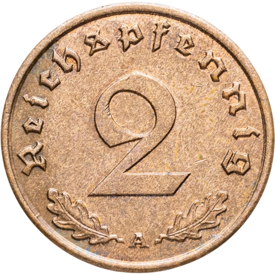• Номинал: 2 рейхспфеннига (reichspfennig)