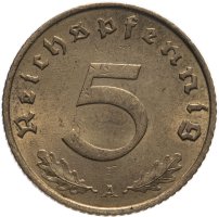 • Номинал: 5 рейхспфеннигов (reichspfennig)