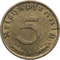 • Номинал: 5 рейхспфеннигов (reichspfennig)