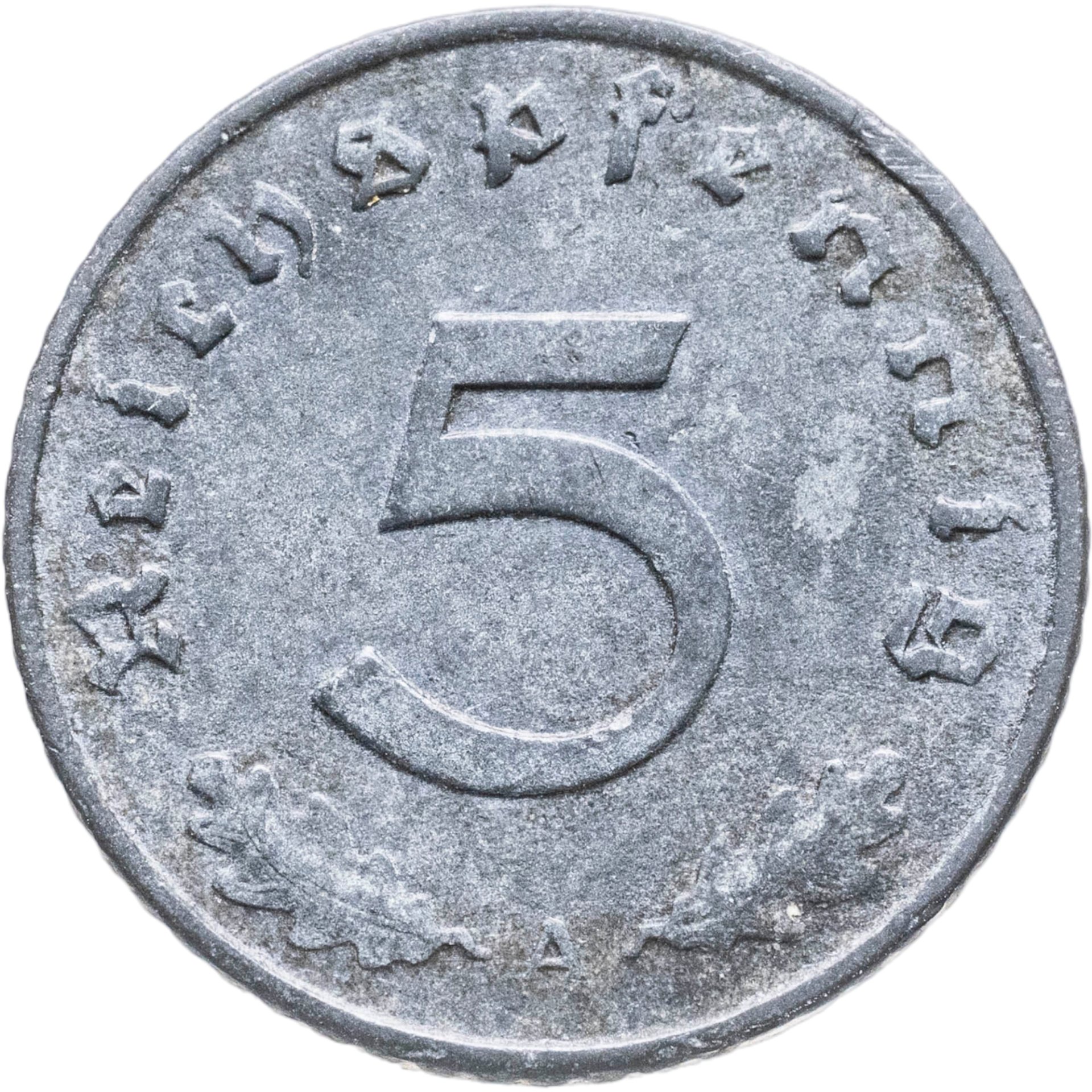 • Номинал: 5 рейхспфеннигов (reichspfennig)