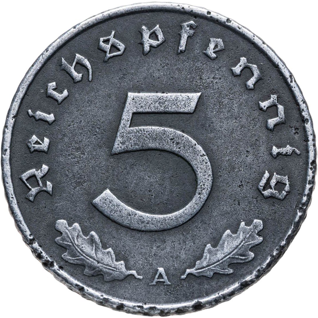 • Номинал: 5 рейхспфеннигов (reichspfennig)
