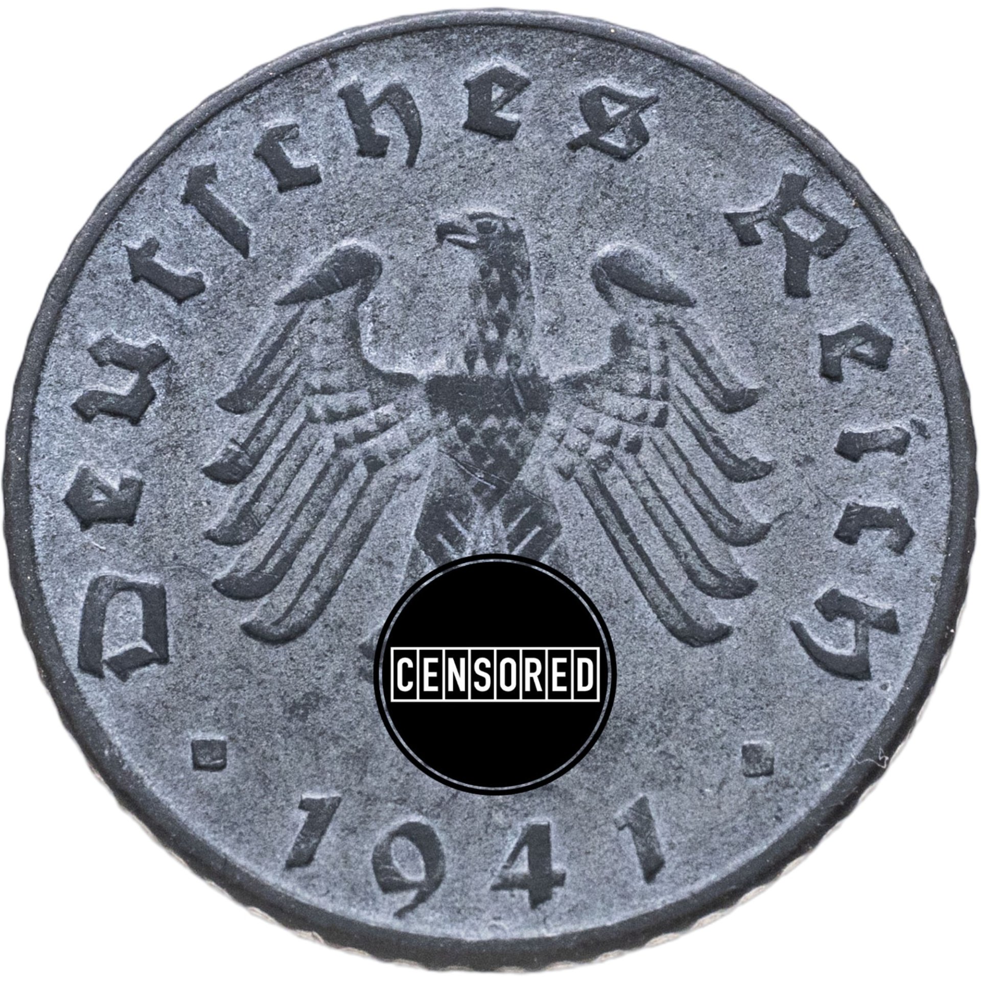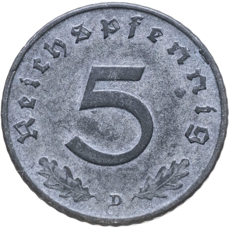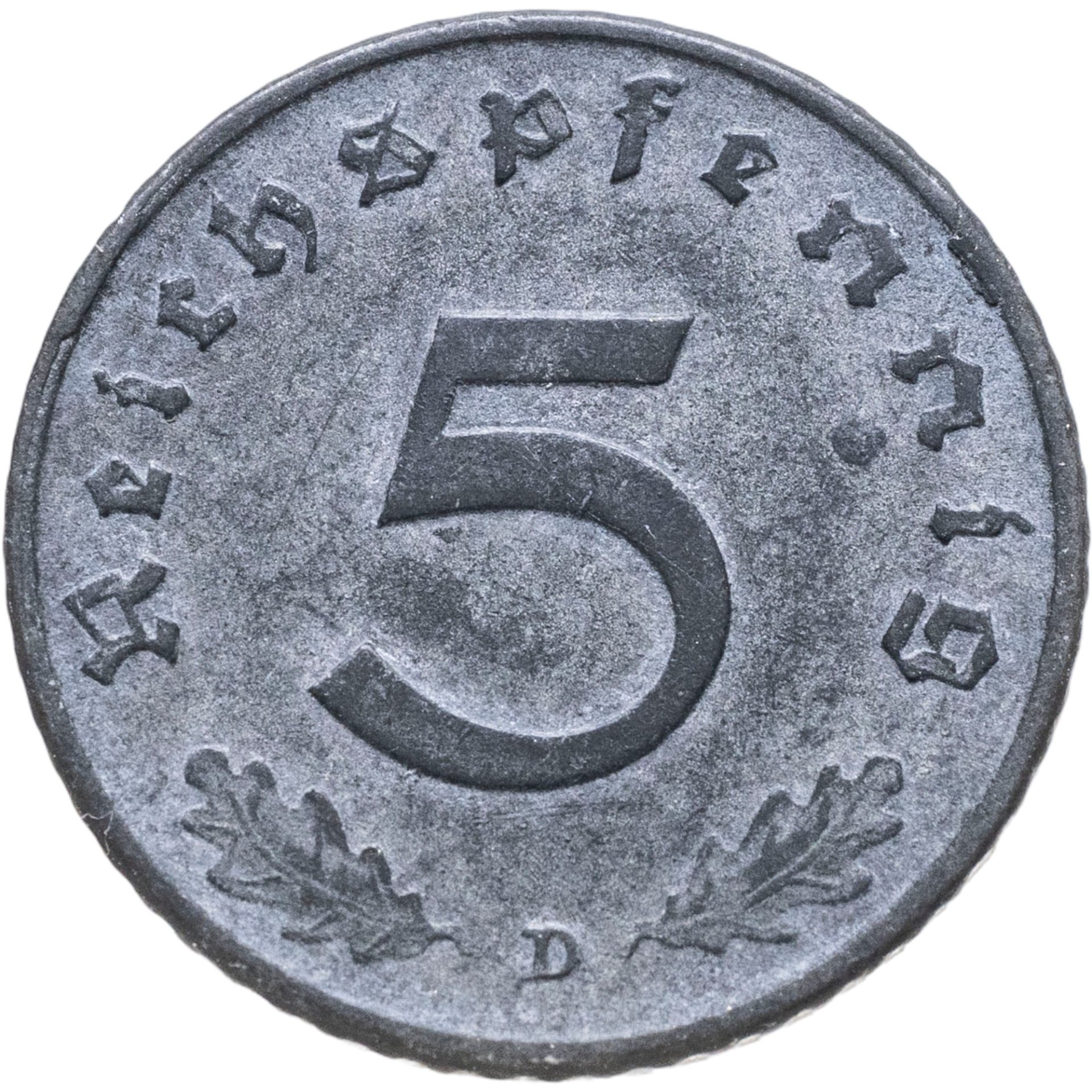 Германия (Третий рейх) 5 рейхспфеннигов (reichspfennig) 1941, знак монетного двора: "D" - Мюнхен