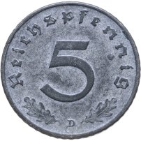 • Номинал: 5 рейхспфеннигов (reichspfennig)