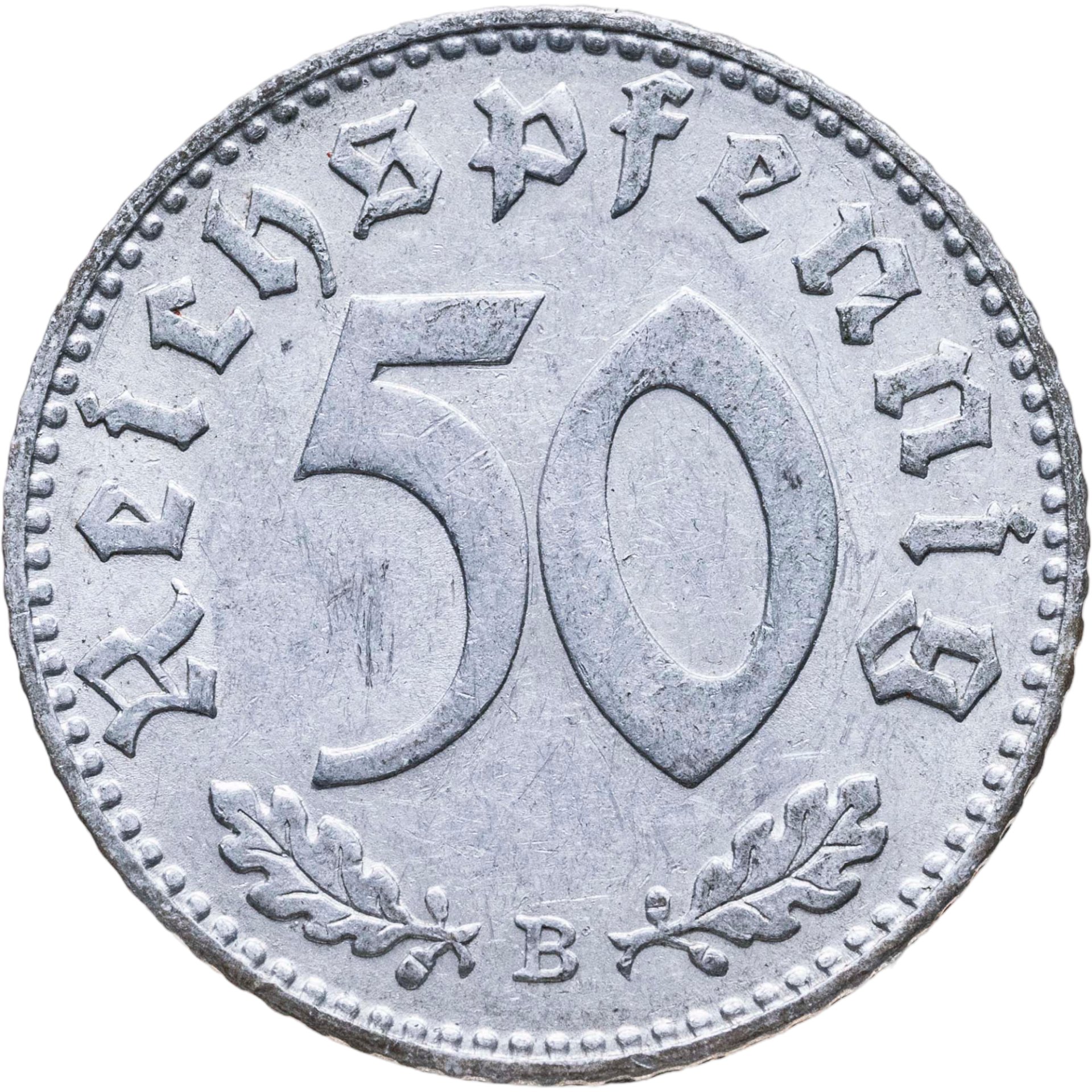 • Номинал: 50 рейхспфеннигов (reichspfennig)