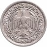 В центре номинал. Над номиналом дубовые листья. Надписи: 50 / Reichspfennig.