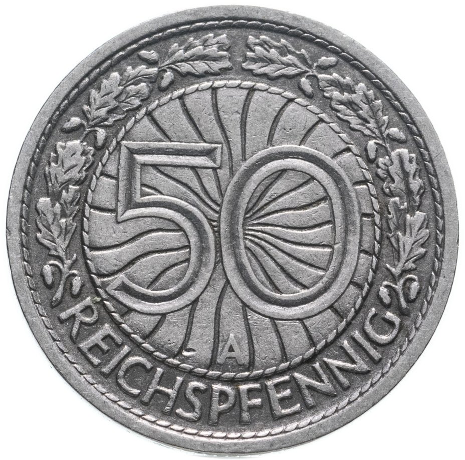 • Номинал: 50 рейхспфеннигов (reichspfennig)