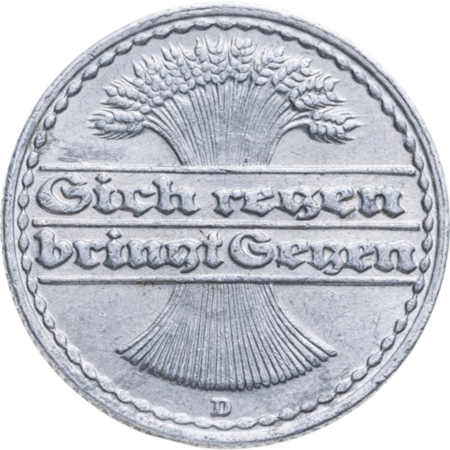 Германия, Веймарская республика 50 пфеннигов (pfennig) 1922, знак монетного двора "D" — Мюнхен