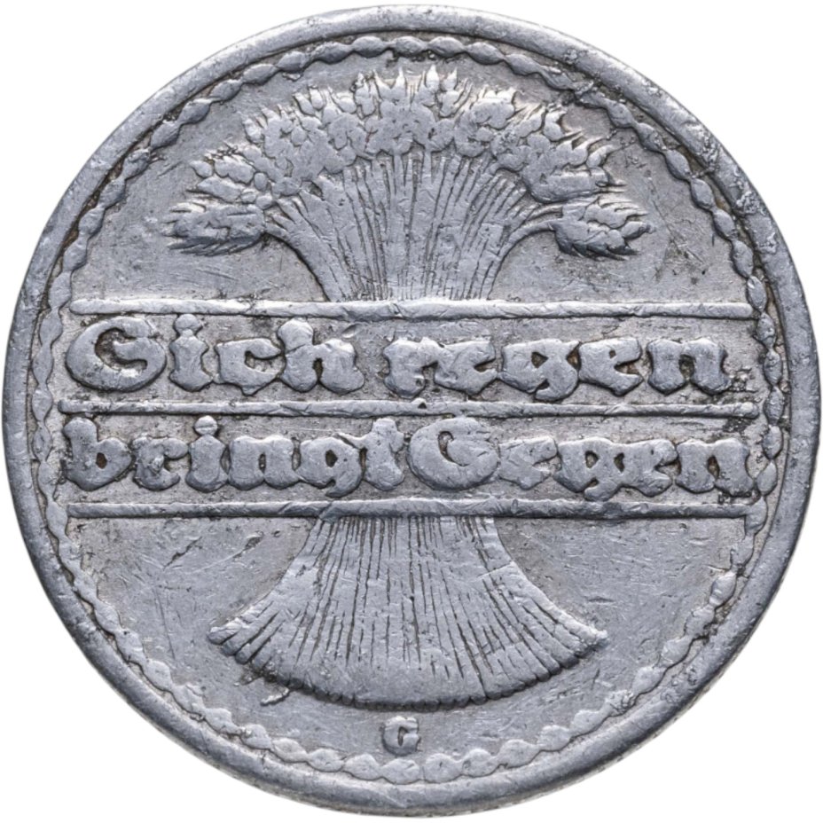 Германия (Веймарская республика) 50 пфеннигов (pfennig) 1922 G знак монетного двора "G" — Карлсруэ