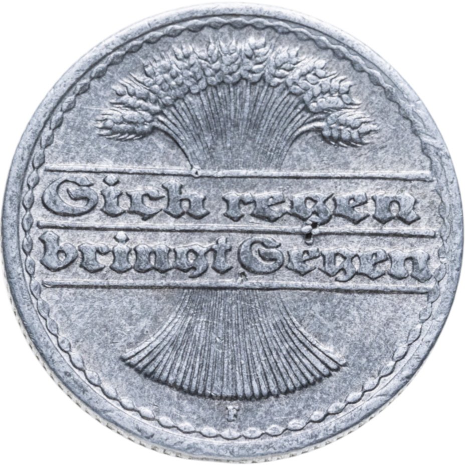 Германия (Веймарская республика) 50 пфеннигов (pfennig) 1922 F знак монетного двора "F" — Штутгарт