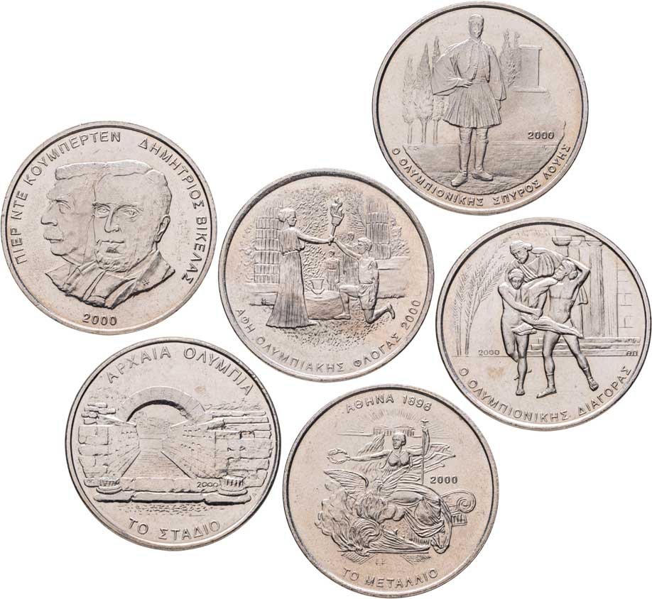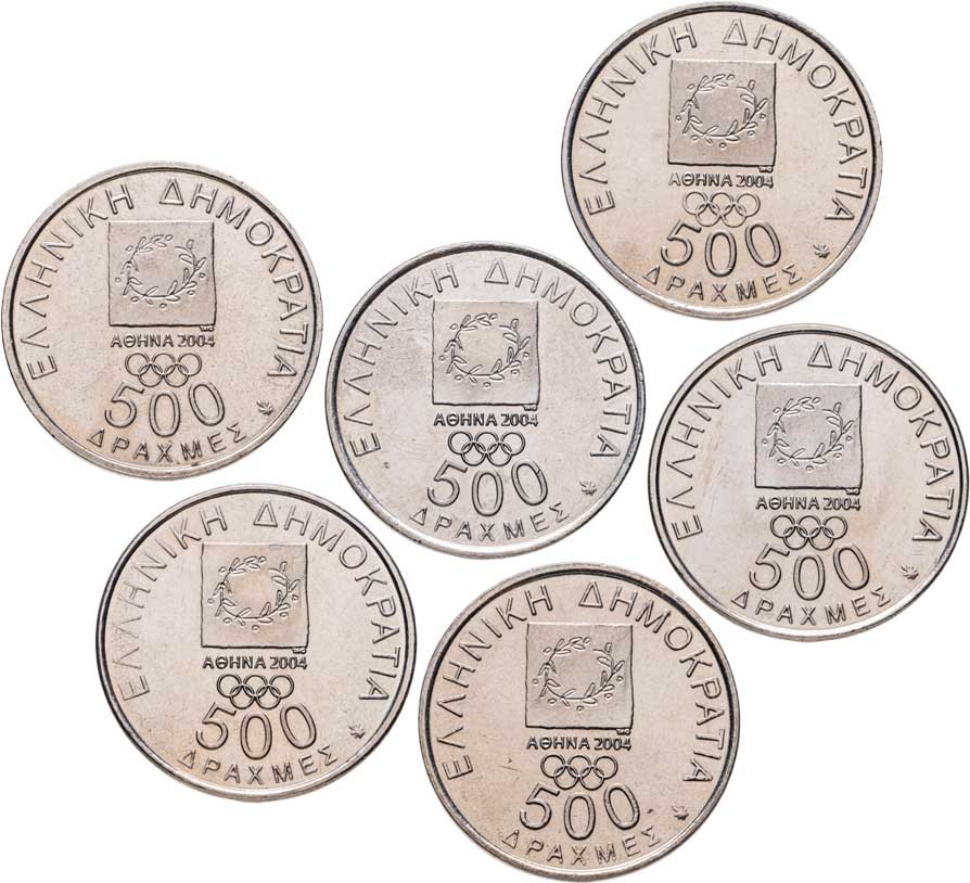 Греция, полный комплект из 6 юбилейных монет 500 драхм 2000 г. XXVIII летние Олимпийские Игры Афины-2004